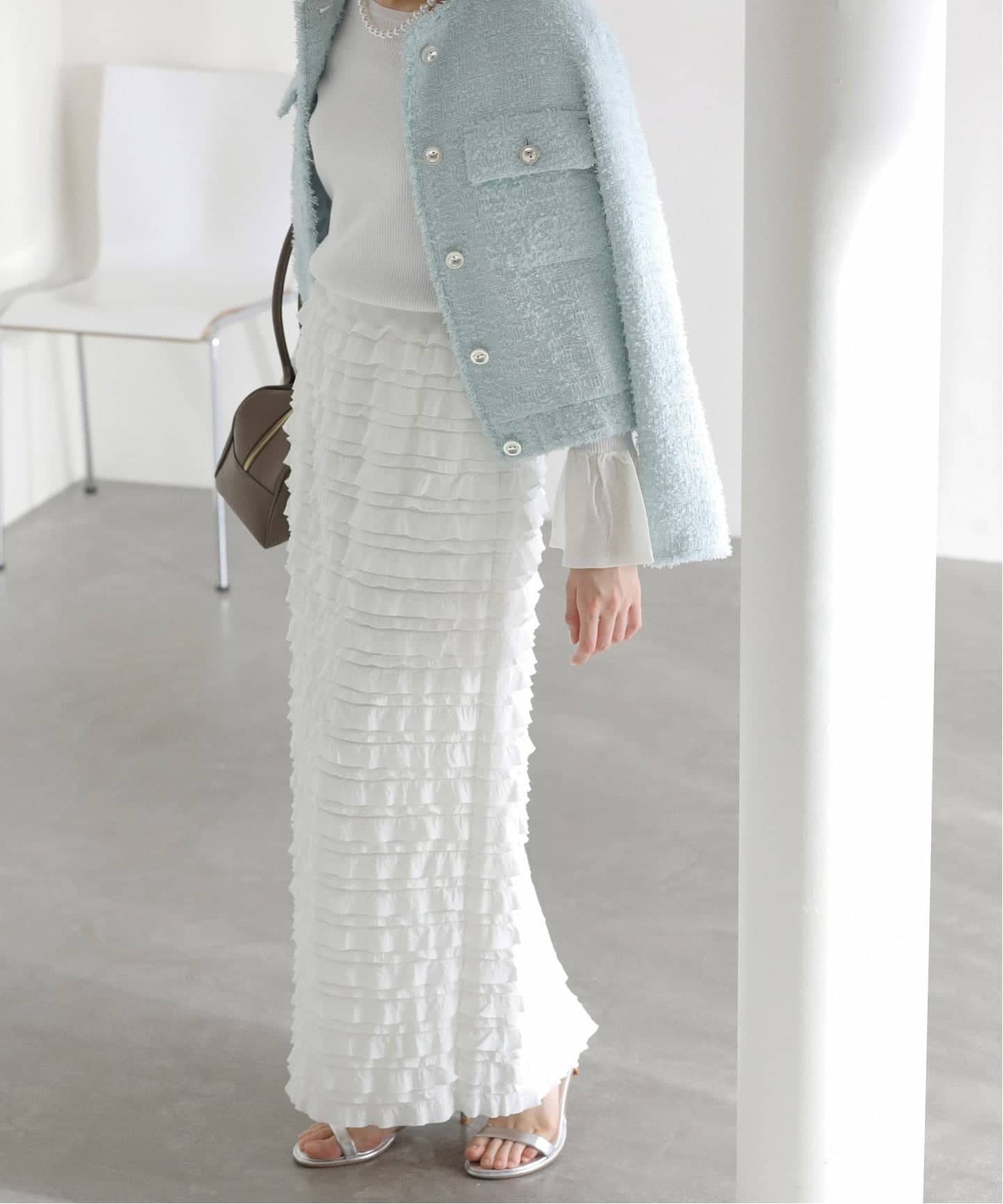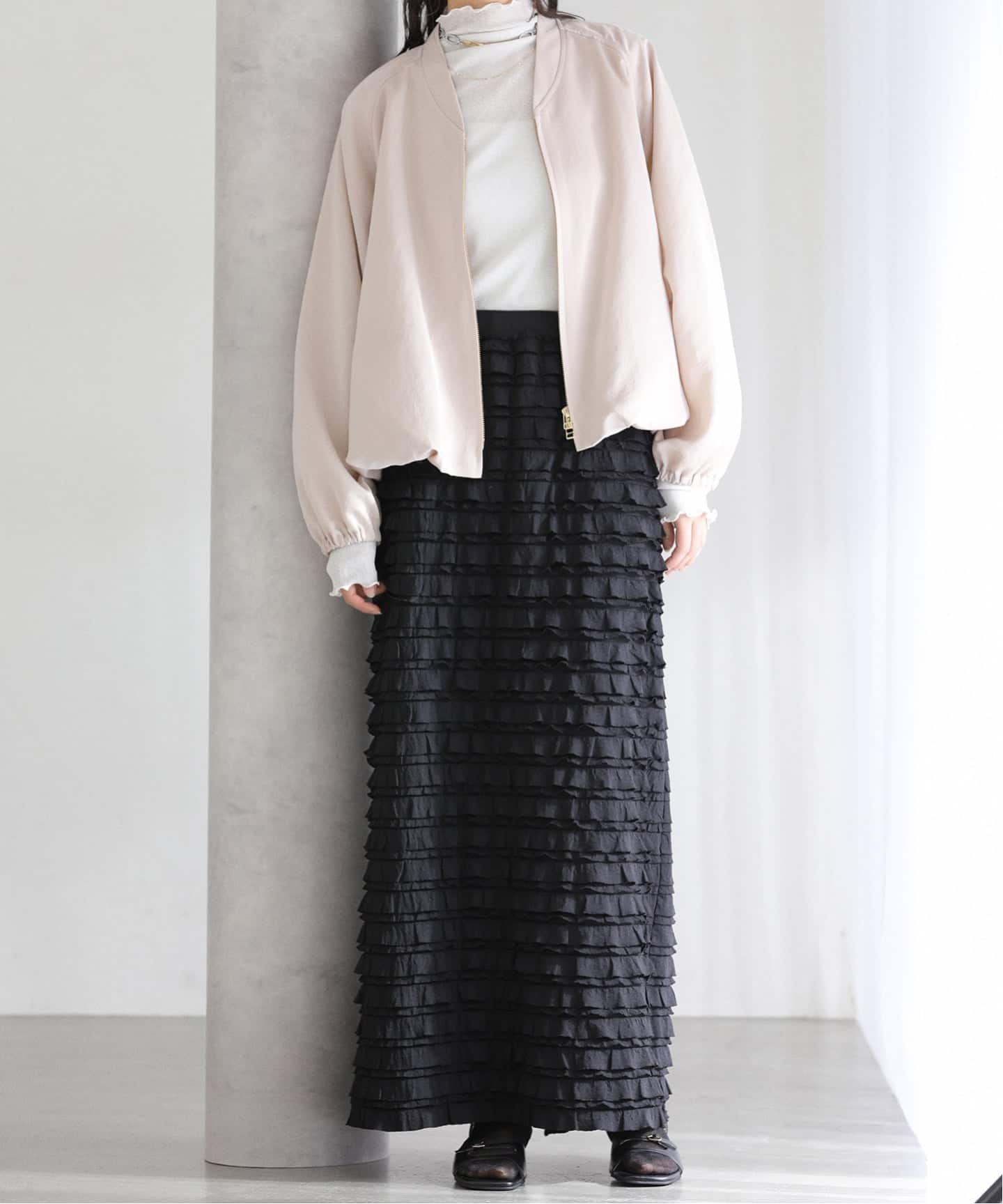 フリル使いがフェミニンな印象のロングスカート。