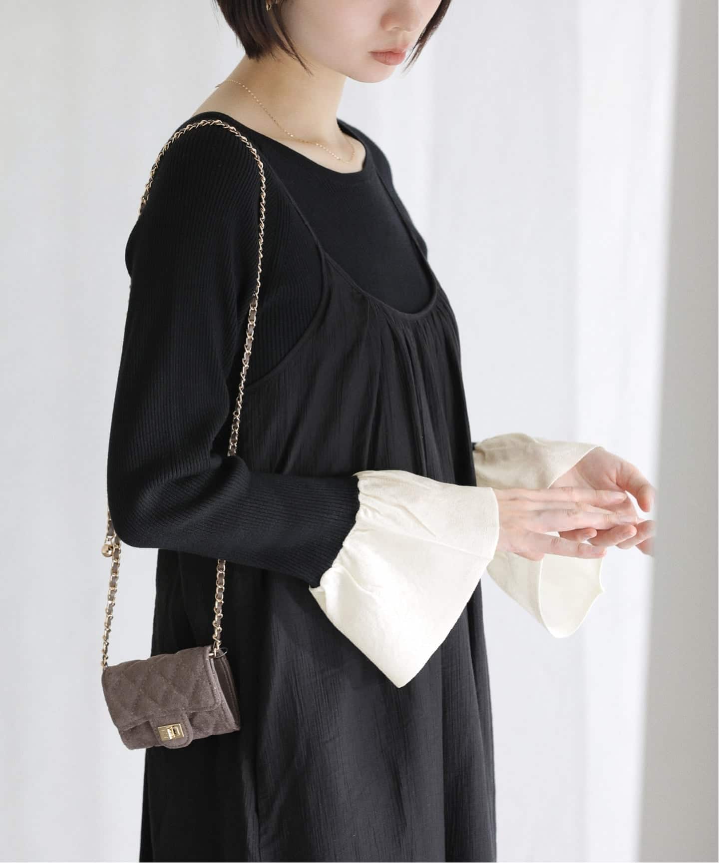 |フリルスリーブニット