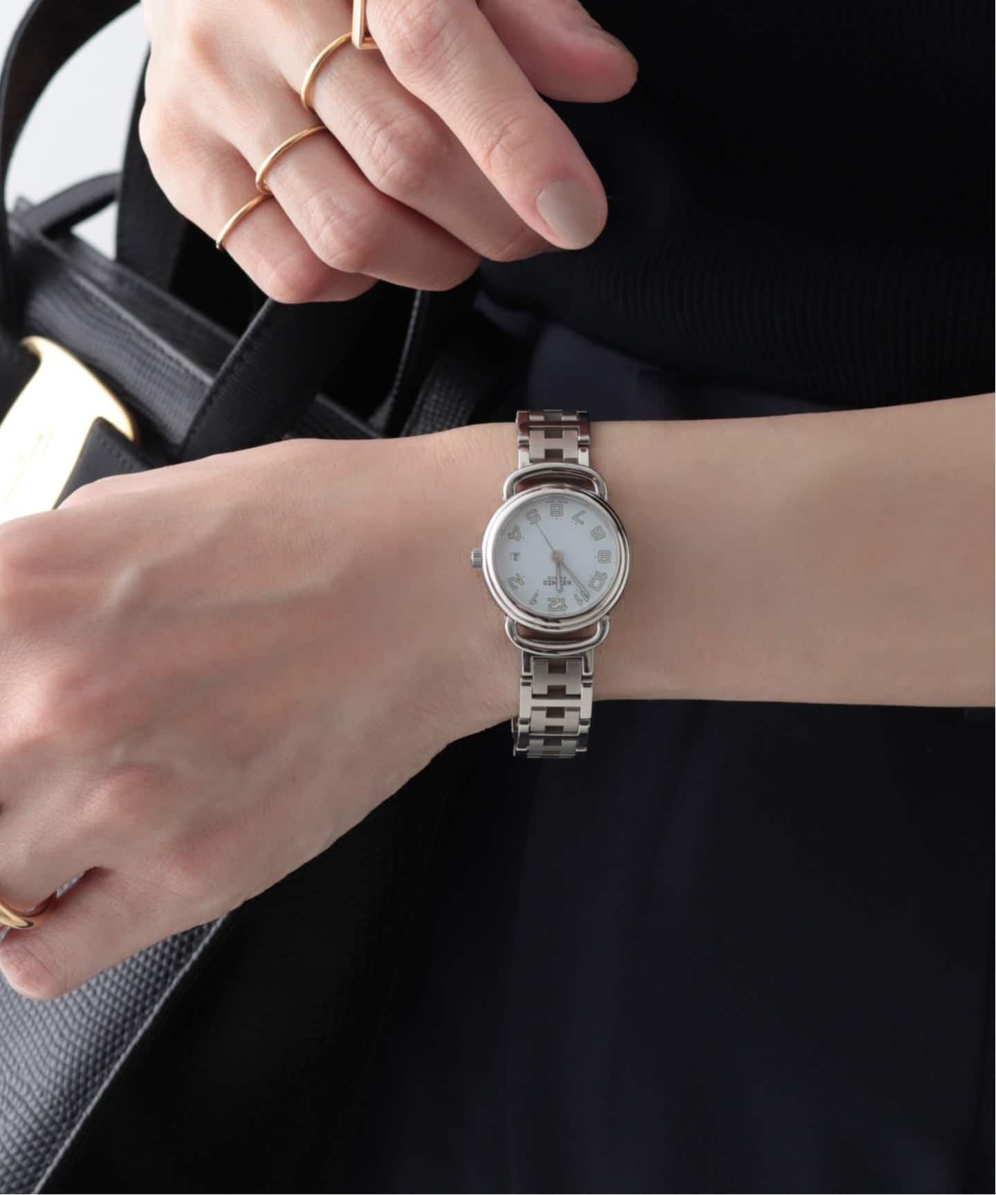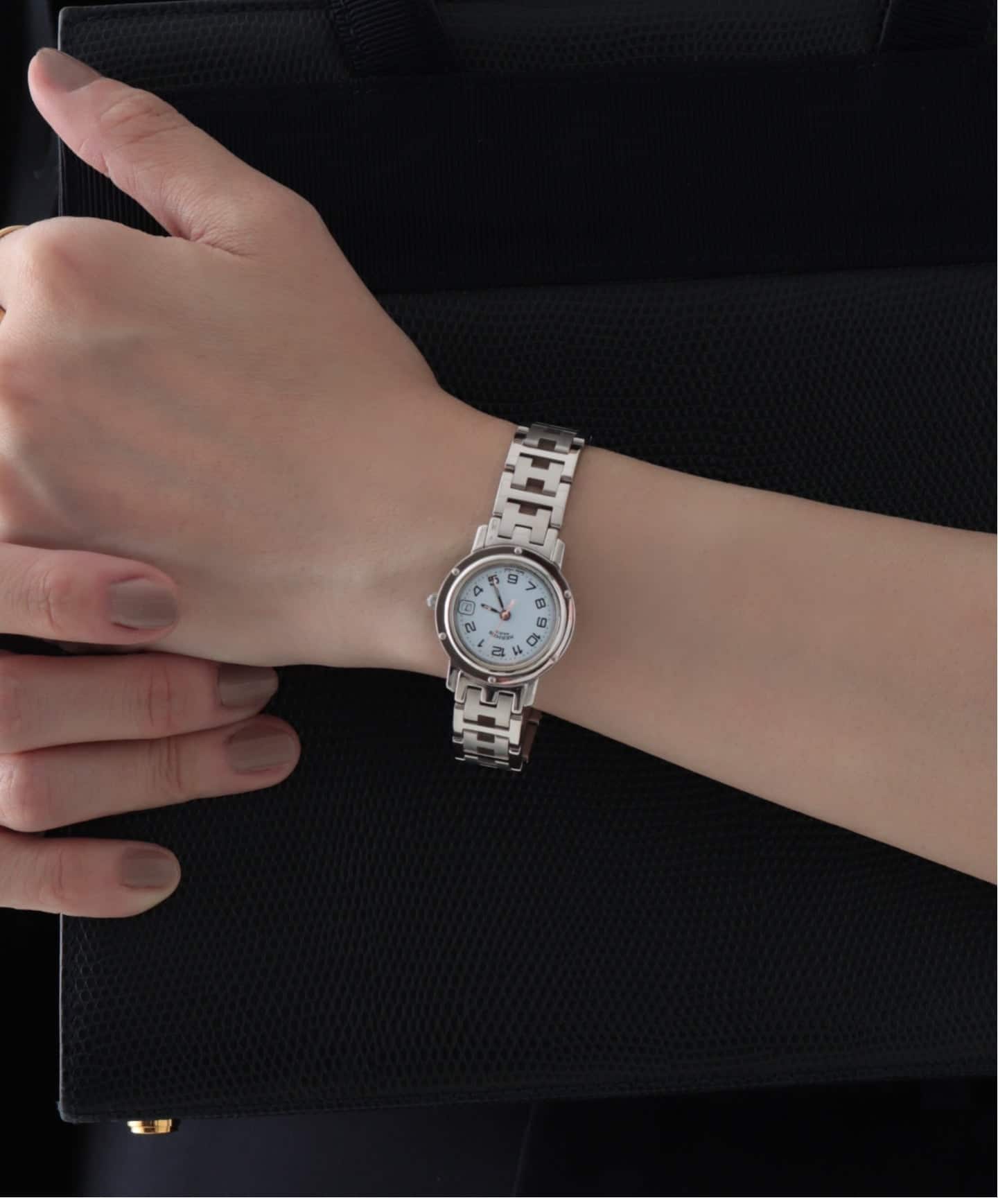 クリーンでベーシックなSVカラーブレスのHERMESウォッチ。ヴィンテージならベーシックな中にも自分らしさに寄り添ってくれるデザインバリエーションが豊富。オケージョンだけでなく、日常のカジュアルシーンにも使えるお気に入りの1本を持っておきたい。