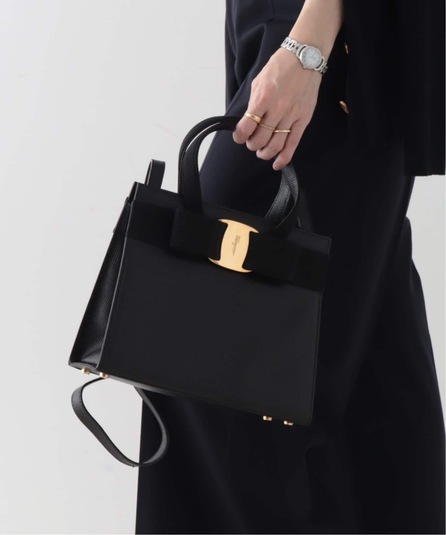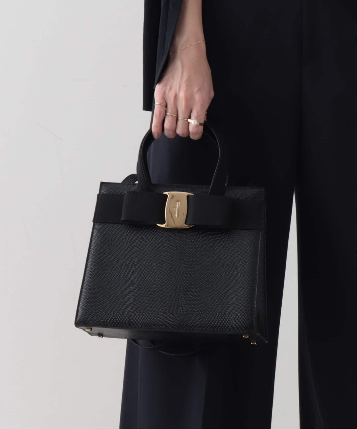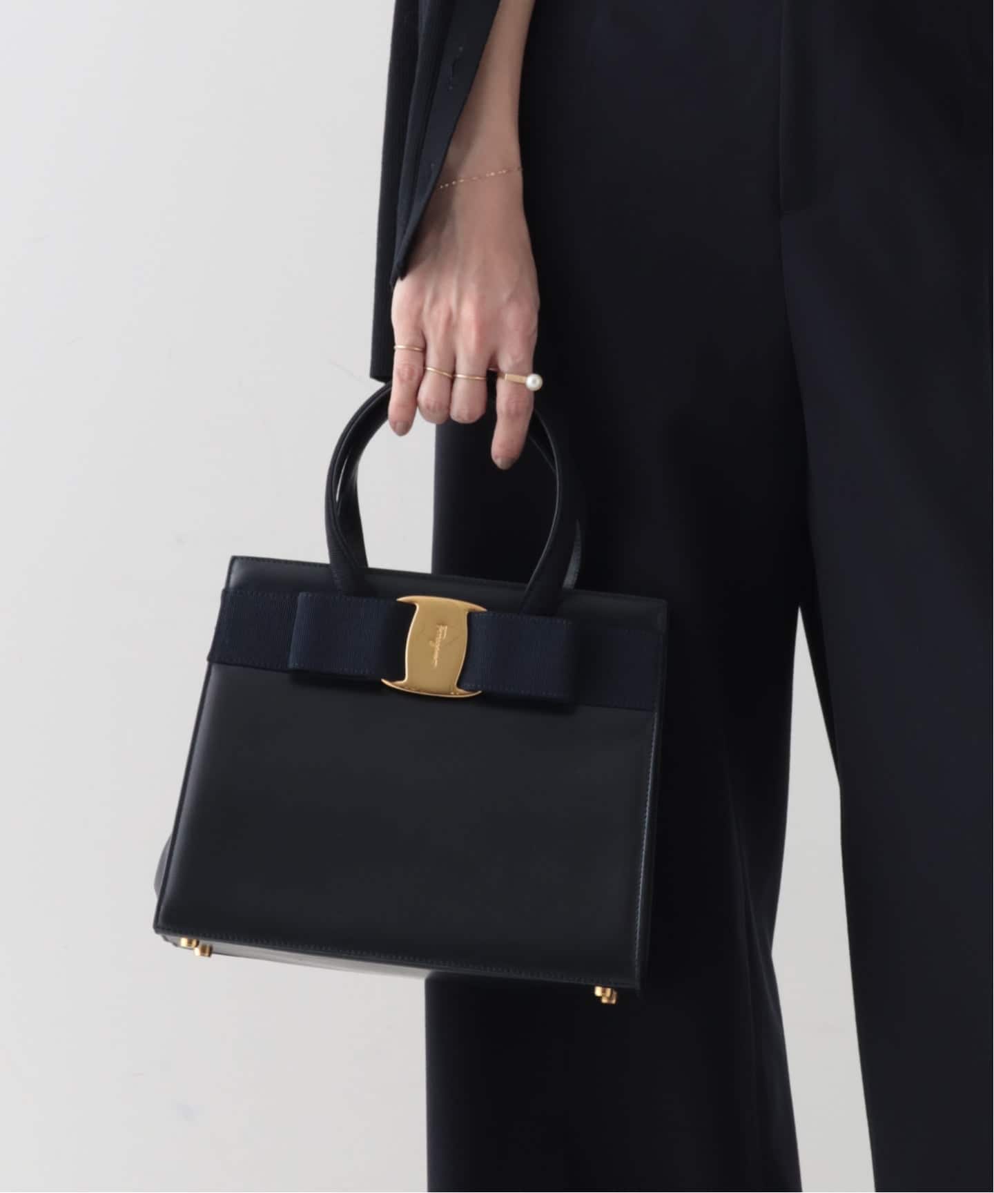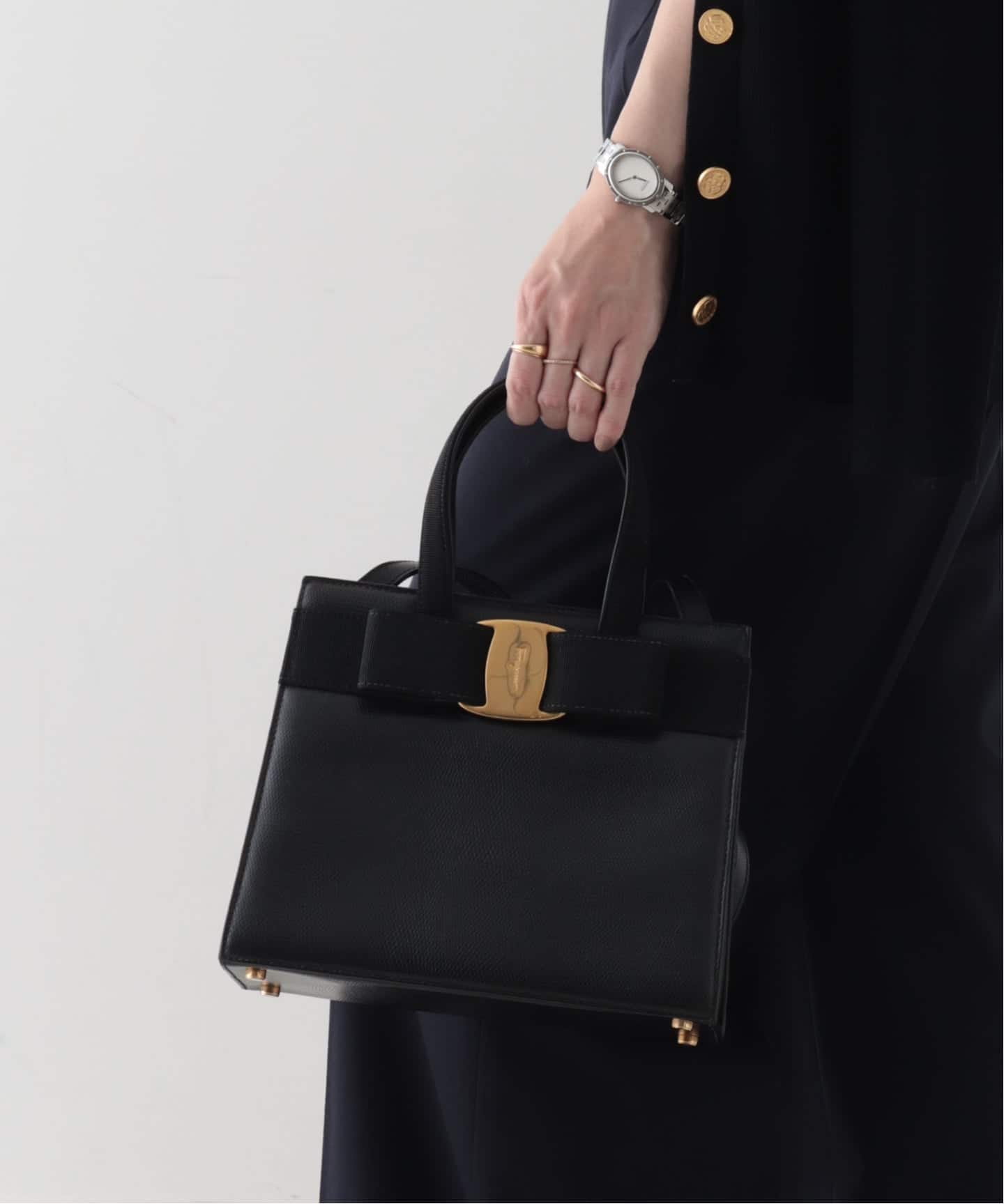 可憐なムードを醸し出すFERRAGAMO VARAのハンドバッグ。フェミニンなムードのバッグは、スカートスタイルはもちろん、きちんと感のあるパンツスタイルにも優しさを生み出してくれる心強い味方。
