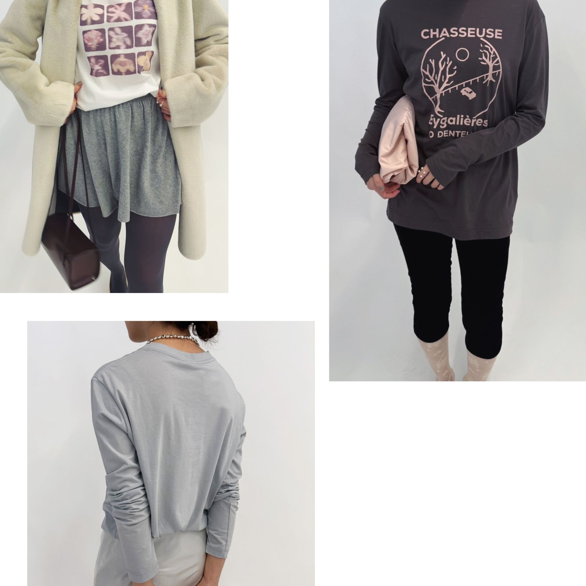 青みのあるアイスグレーが、カジュアルになりがちなTシャツをピリッと辛く見せてくれます。