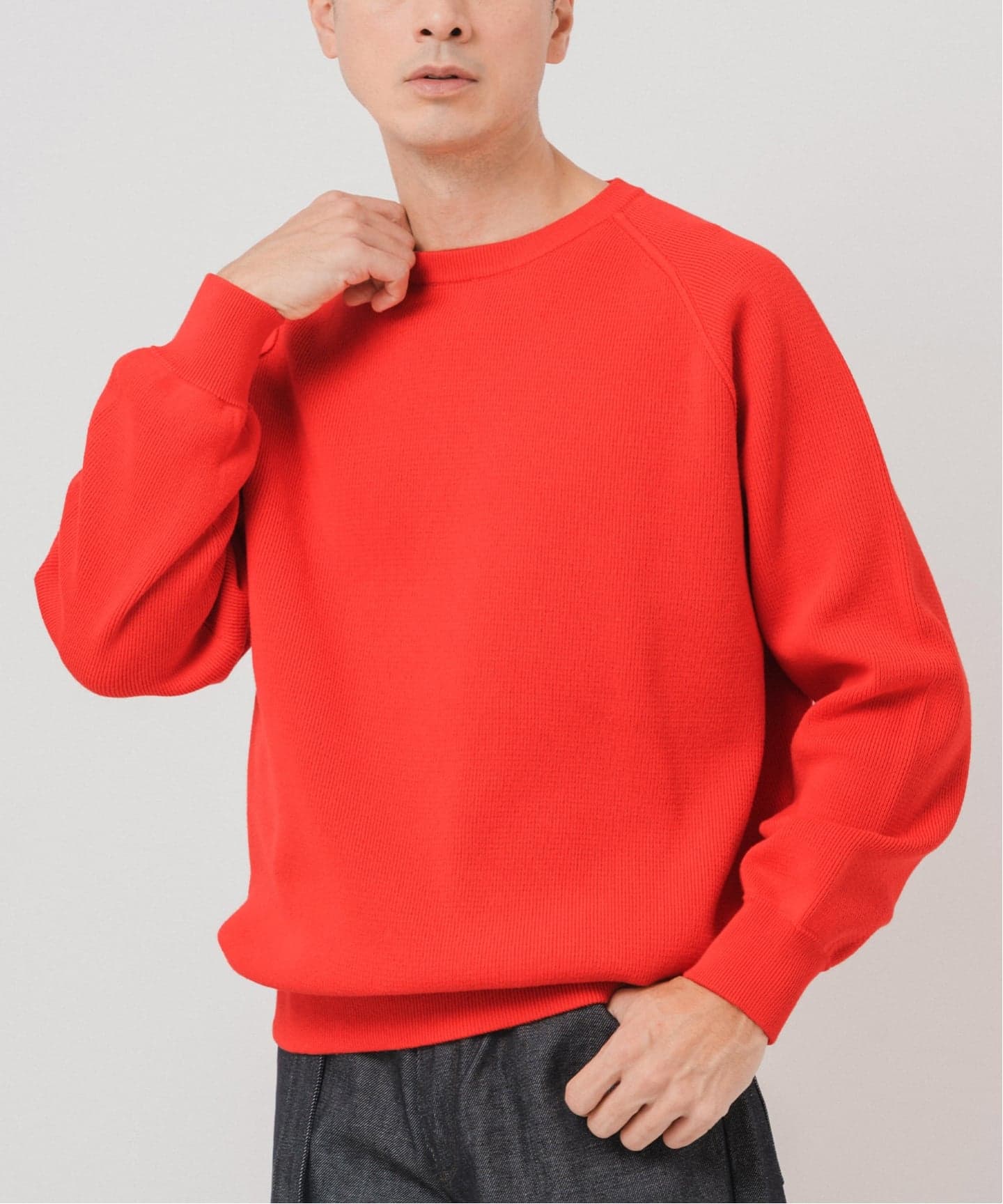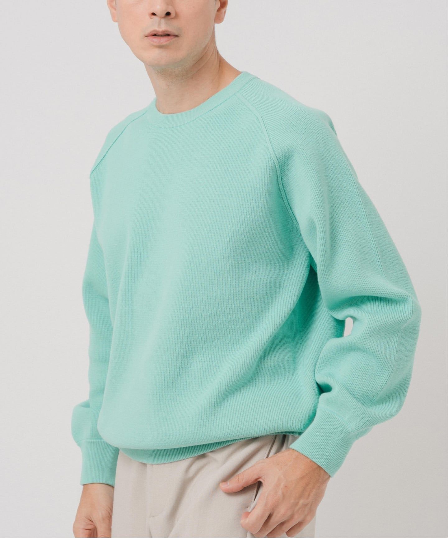 凹凸感のある編地と柔らかな春カラーで、新鮮な表情を見せるクルーネックニット。
