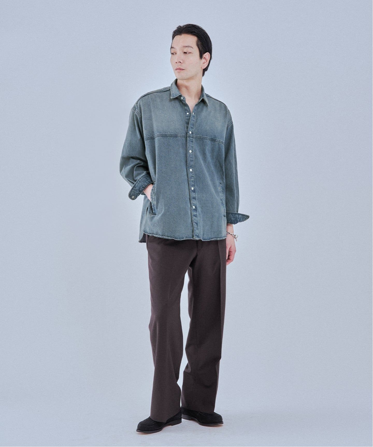 9オンスデニムを使用した、シャツ感覚でも羽織れるライトアウター。横から見ても存在感のあるオーバーサイズで、身体のラインを拾わず大人の余裕ある着こなしを演出します。