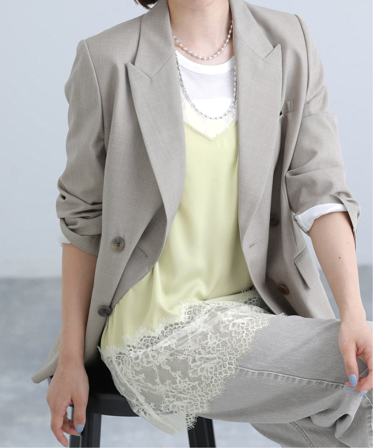 前後着用も可能でシャツやレースを覗かせたアレンジも映える一着。