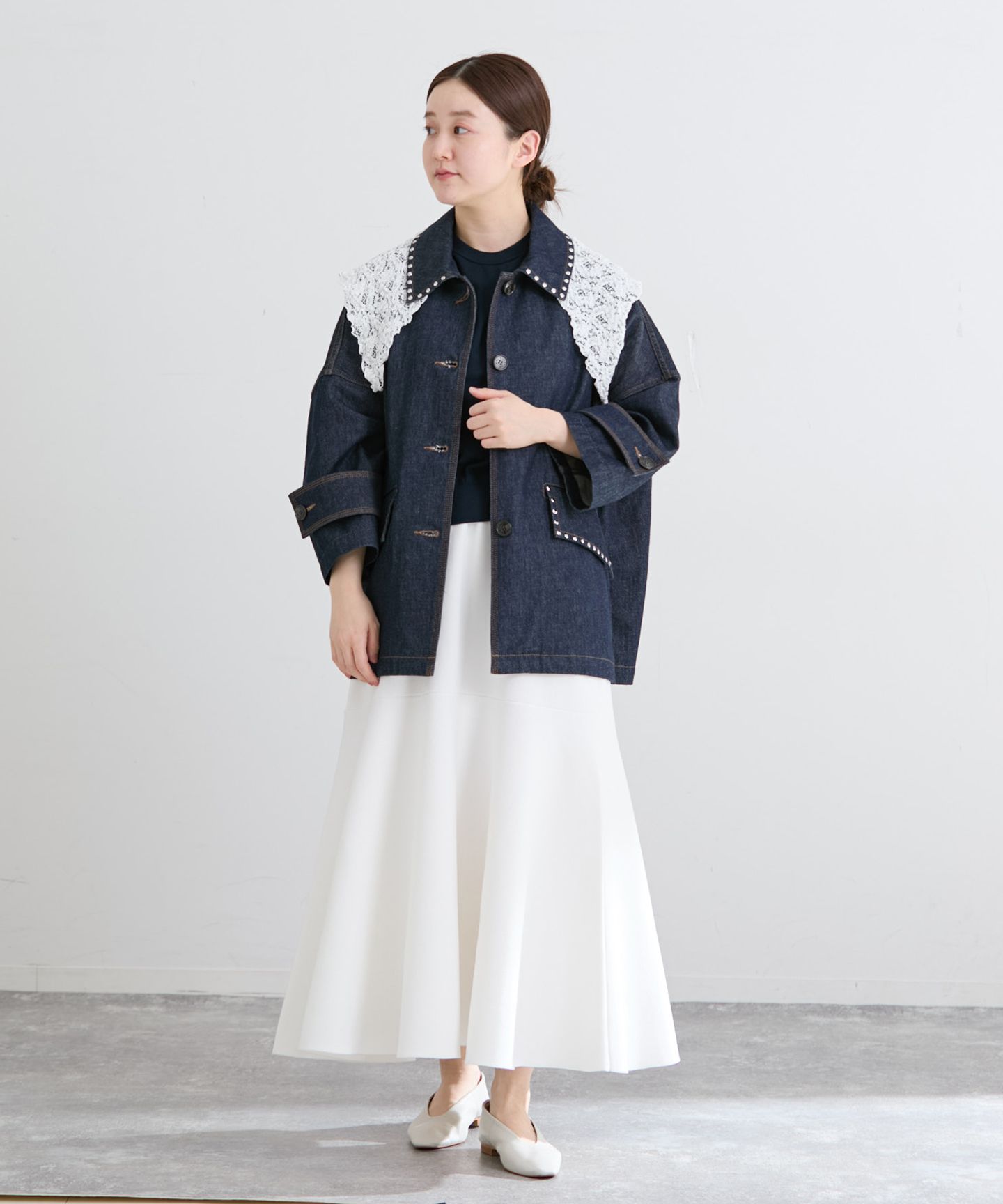 襟元やフラップにあしらったスタッズが、カジュアルなデニムにエッジを添えたデザインです。