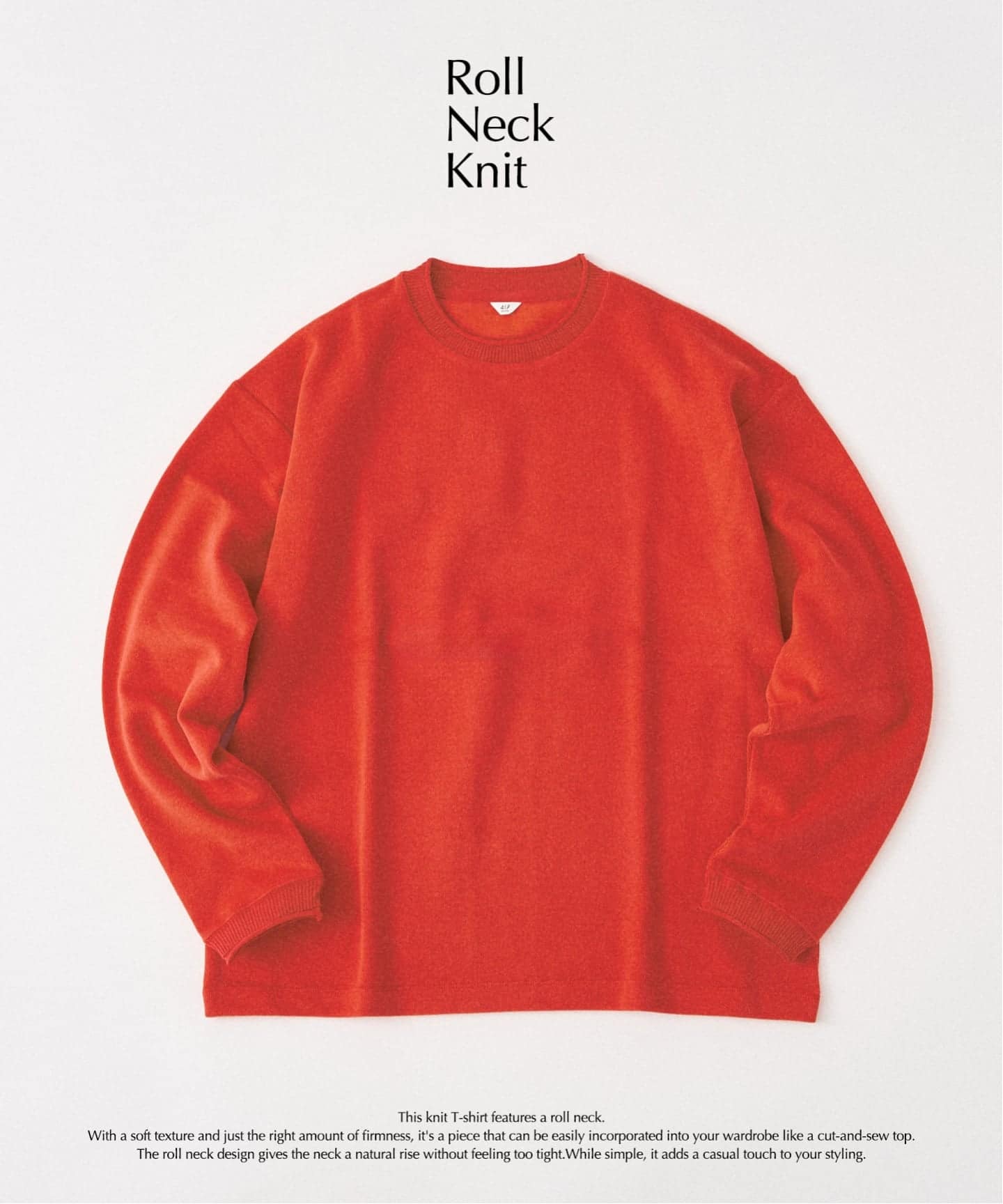 ほんの少し立ち上がるロールネックが、スタイリングに自然な奥行きをつくってくれる一着。タートルほど主張は強くないけれど、首元にニュアンスが生まれることで、シンプルな着こなしでもどこか大人っぽい印象に仕上がります。