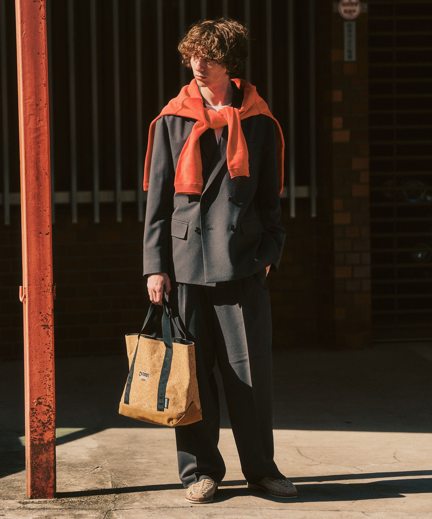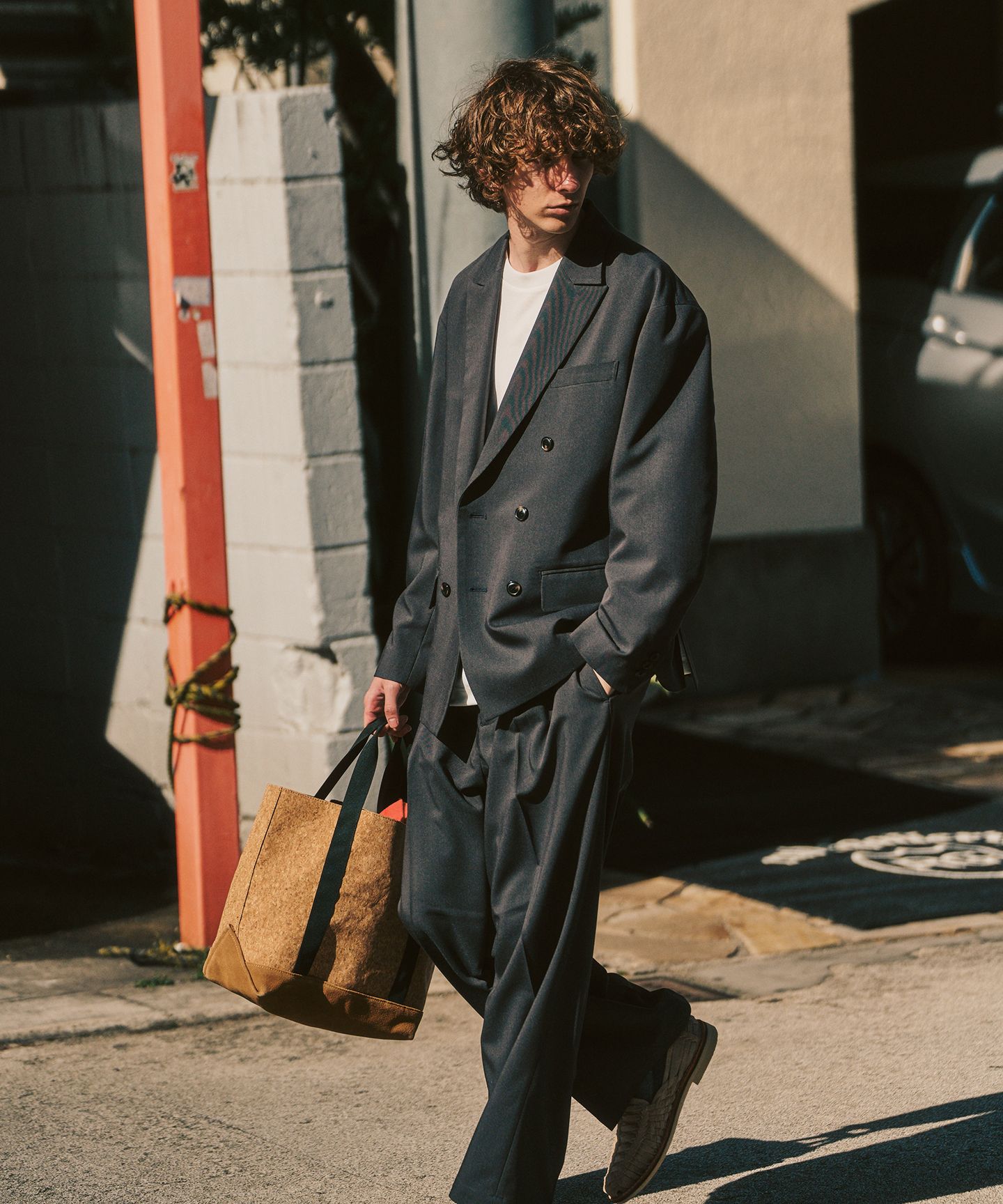 重さはあるのに重く見えない。そんなバランスをつくるなら、これが答え。ダブルのジャケットとワイドパンツの組み合わせは、スーツのフォーマルさを保ちながらも、サイズ感や素材の落ち感で“日常の感触”に落とし込んでいます。冬の抜け切らない日にも、春の入口にも使える、“今の季節をまたぐ”一着です。