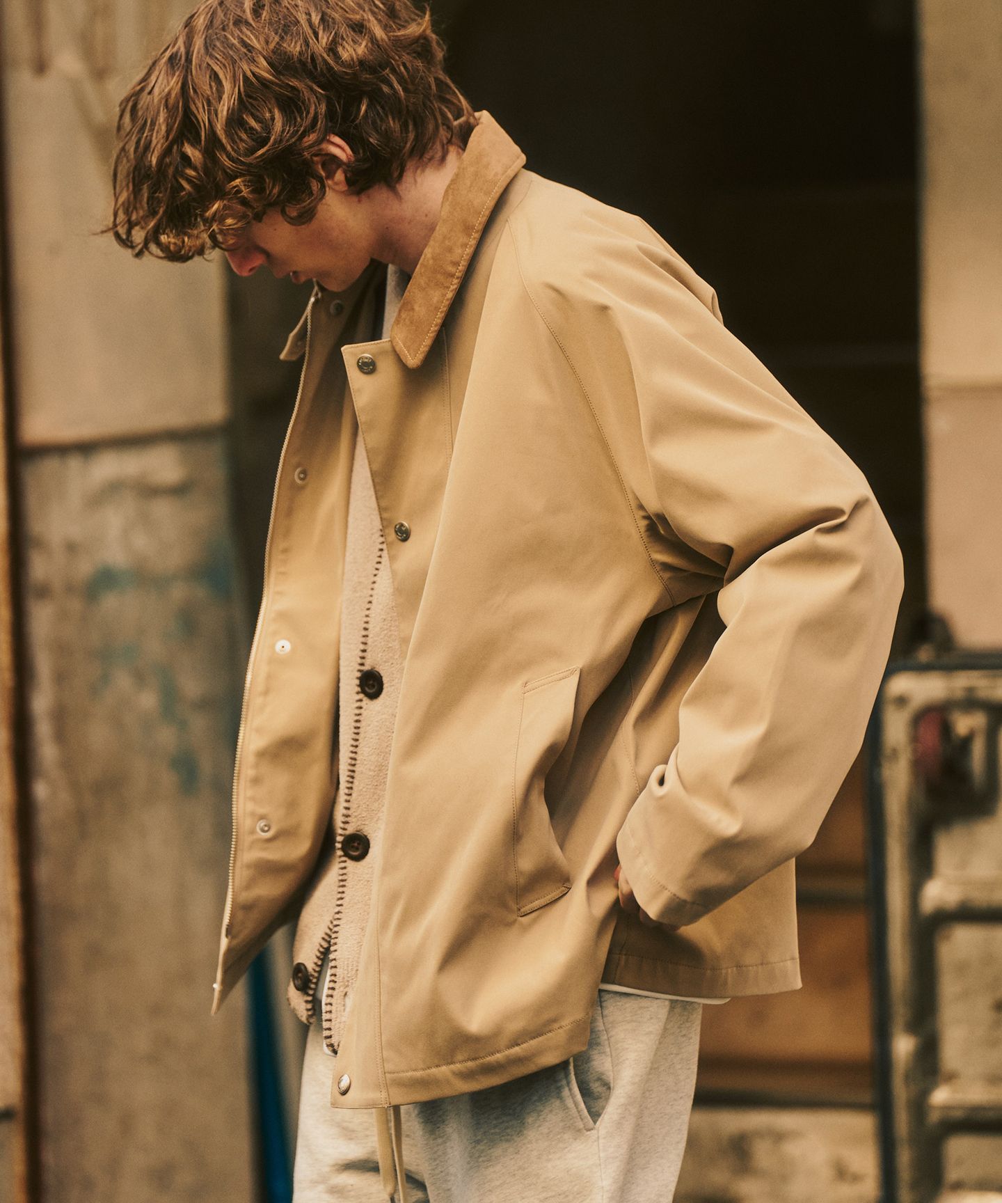 天気や気温の変化にも対応できる。それでいて、いかにもスポーティーにならないのは、素材の表情とサイズバランスのおかげ。冬の終わりはレイヤードの一枚として。春先は主役のライトアウターとして。毎日の延長線で、自然と出番が増えていく一着です。