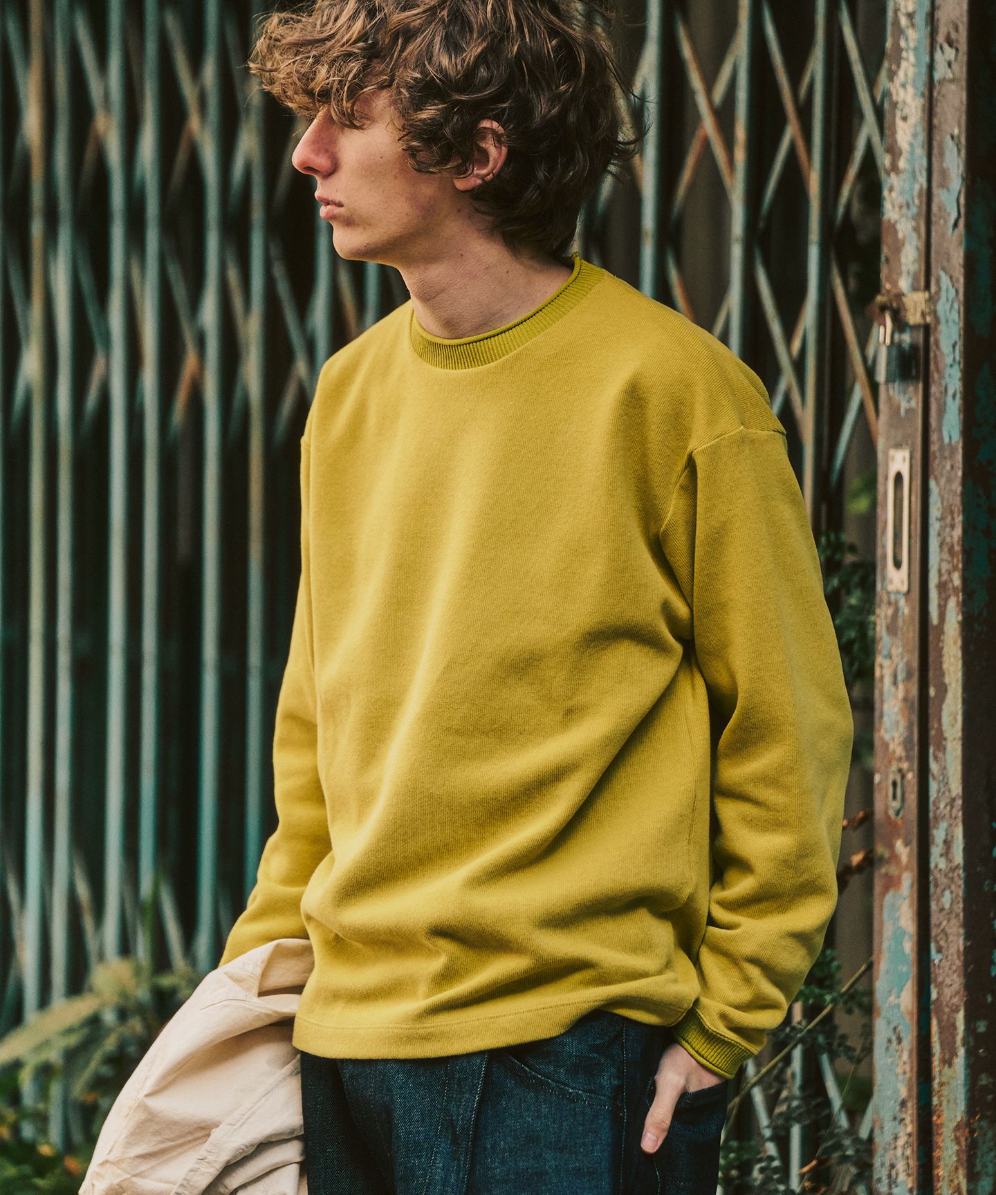 厚すぎず、薄すぎない生地感は、今の時期は一枚で、もう少し寒い日はアウターのインナーとしても活躍。春先には軽めの羽織と合わせて、色を効かせたスタイリングも楽しめます。