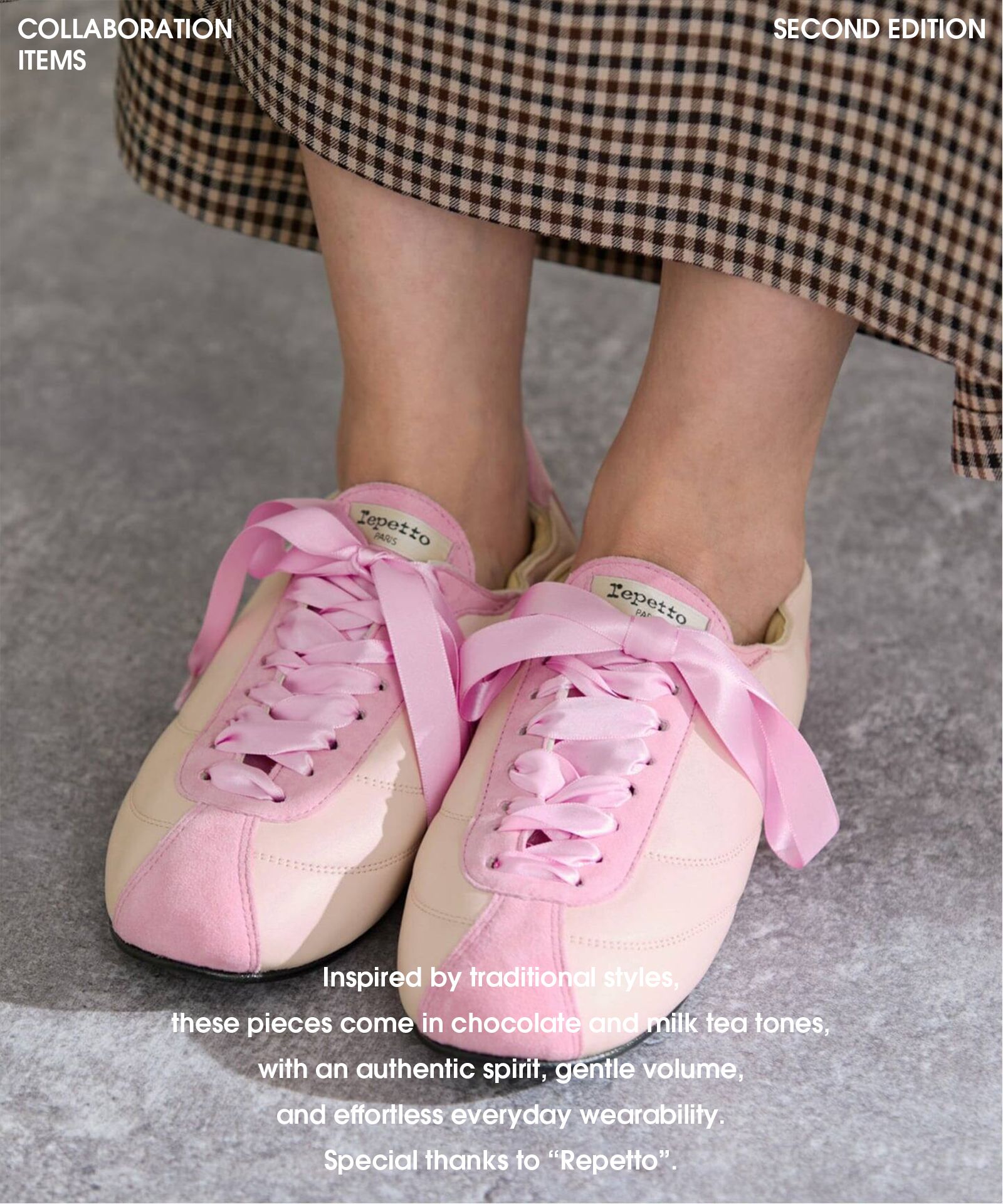 repettoの「Tennis Silk」に、2色のサテンリボンをあしらった特別なコラボレーションモデル。