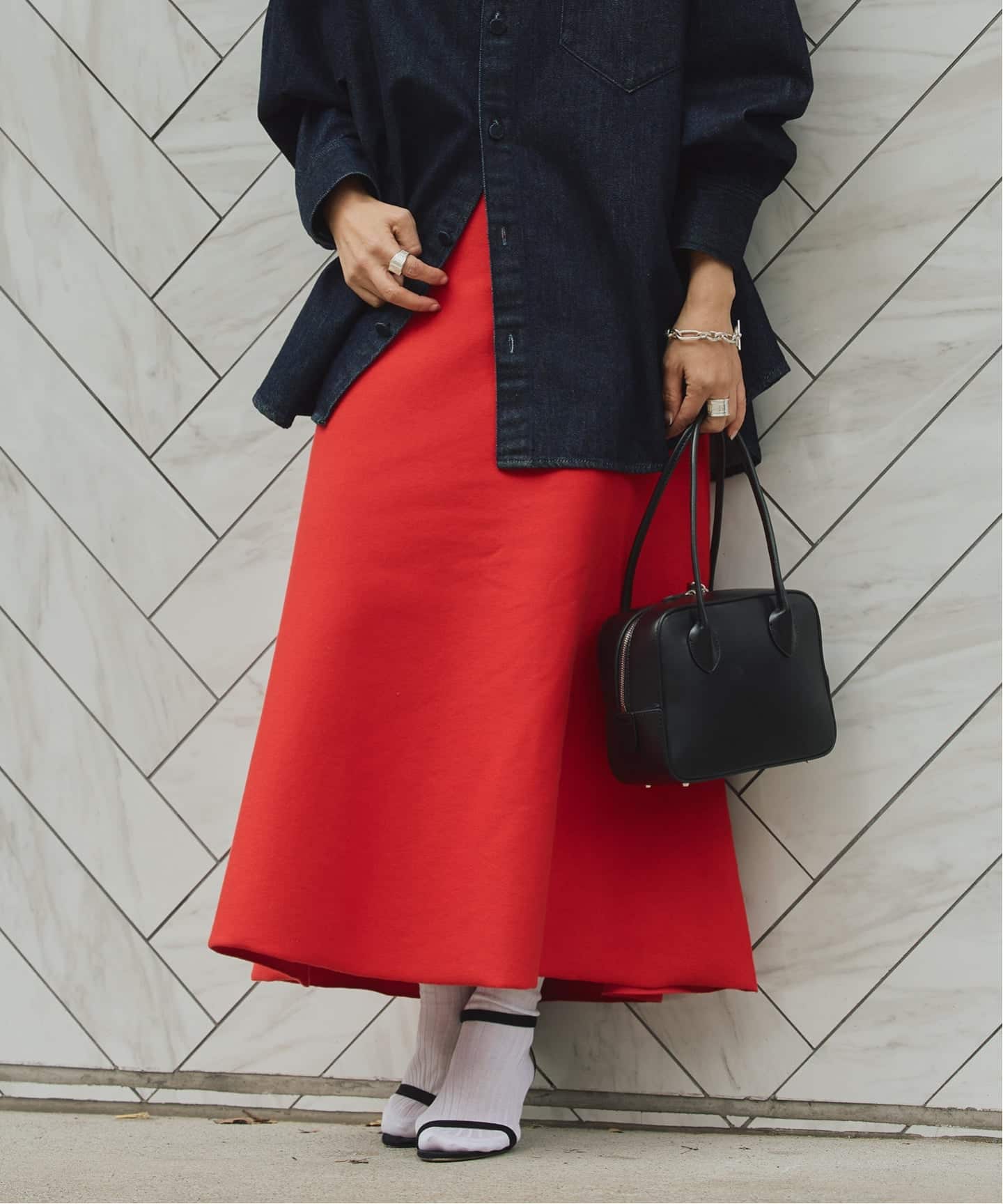 今シーズンはオレンジがかったレッドのスカートでレディな装いにしても◎