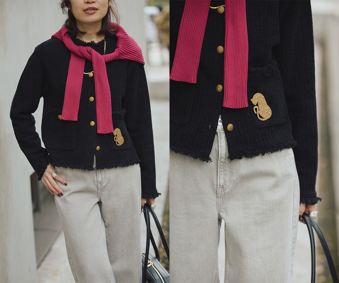 人気のツイードニットジャケットでレトロモダンなスタイルに。