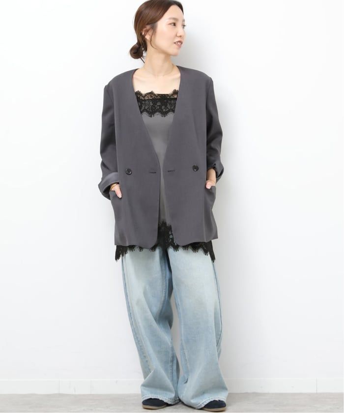 フロントのボタンを1番上まで閉めて、かっちりと着ていただいても◎