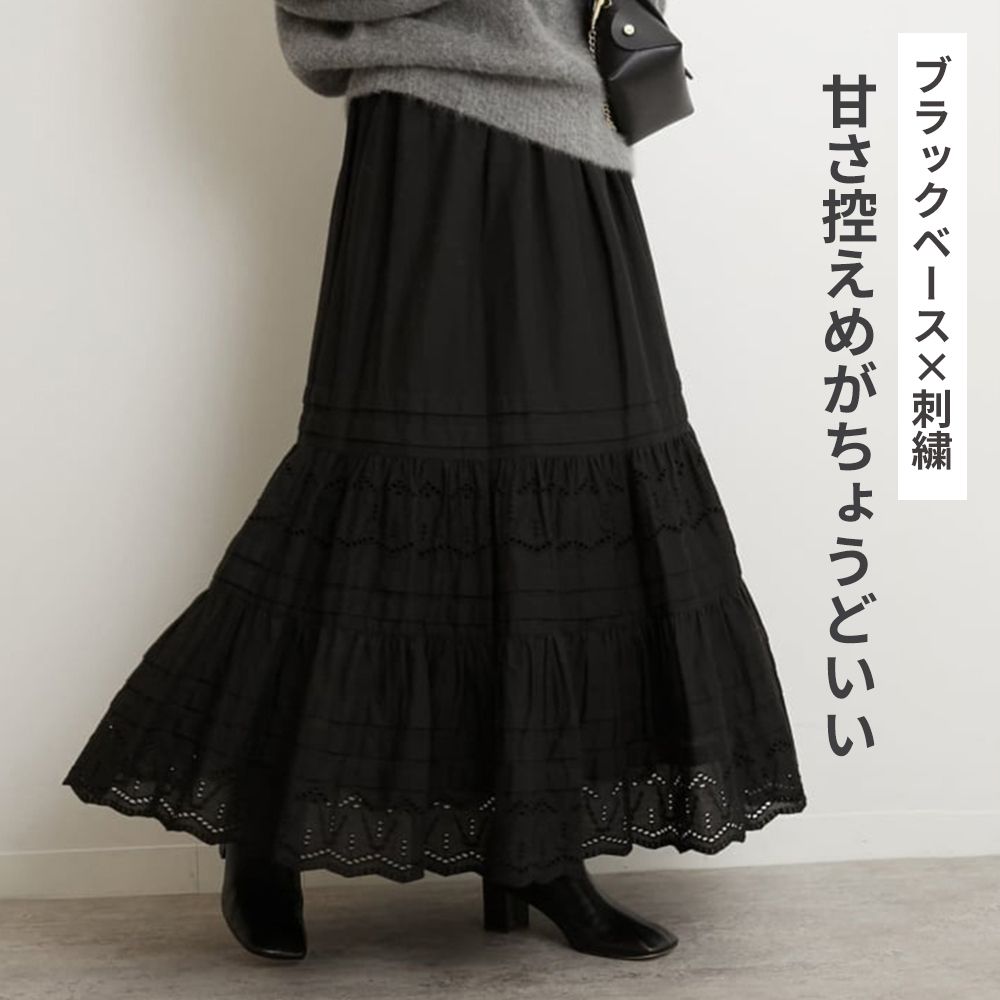 《WEB限定追加》コットンボイルタック刺繍ロングスカート