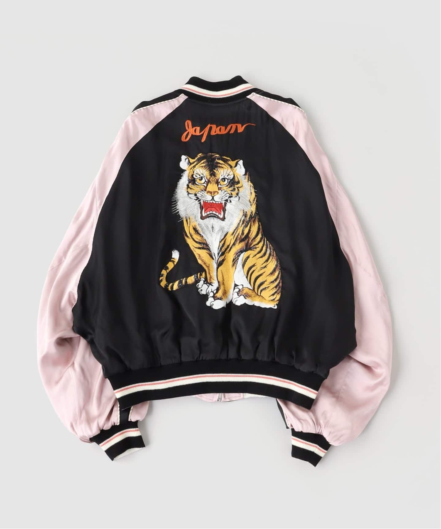 刺繍で描かれたタイガー&ホークが目を引く、DAIRIKUらしさ全開のスカジャン。