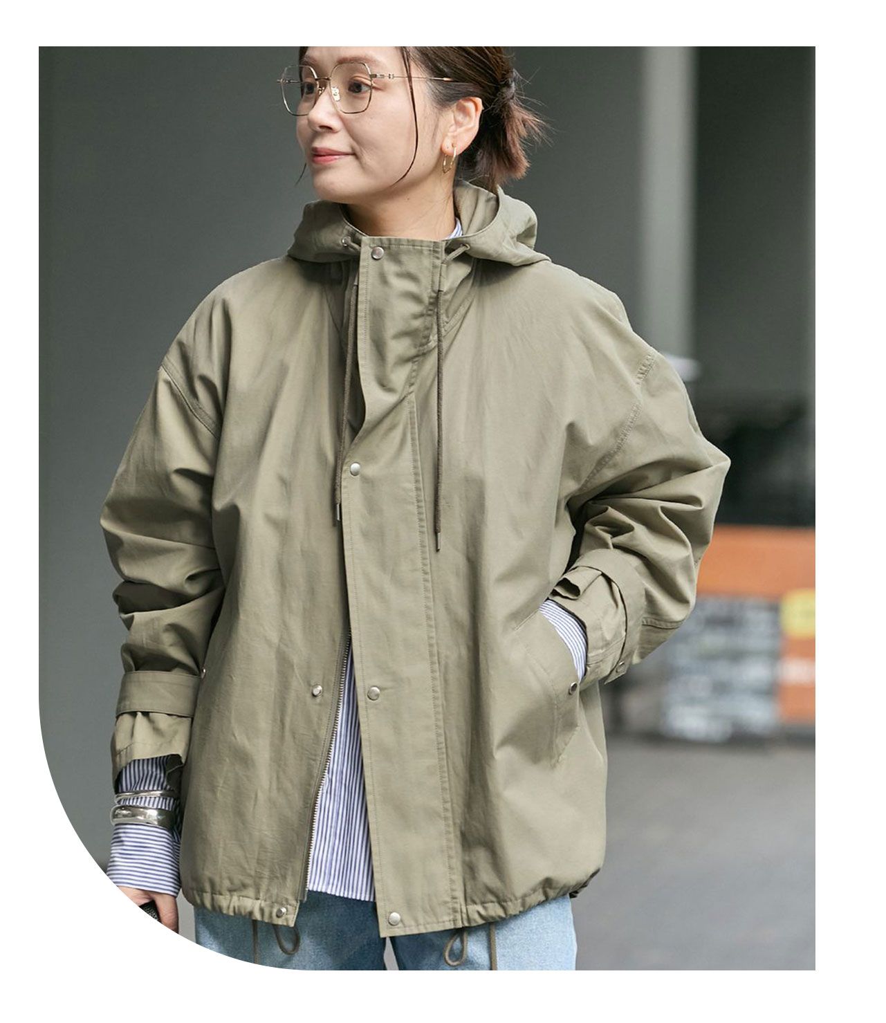 ✔ 腰までしっかり隠れる着丈で、どんなボトムともバランスのとりやすい