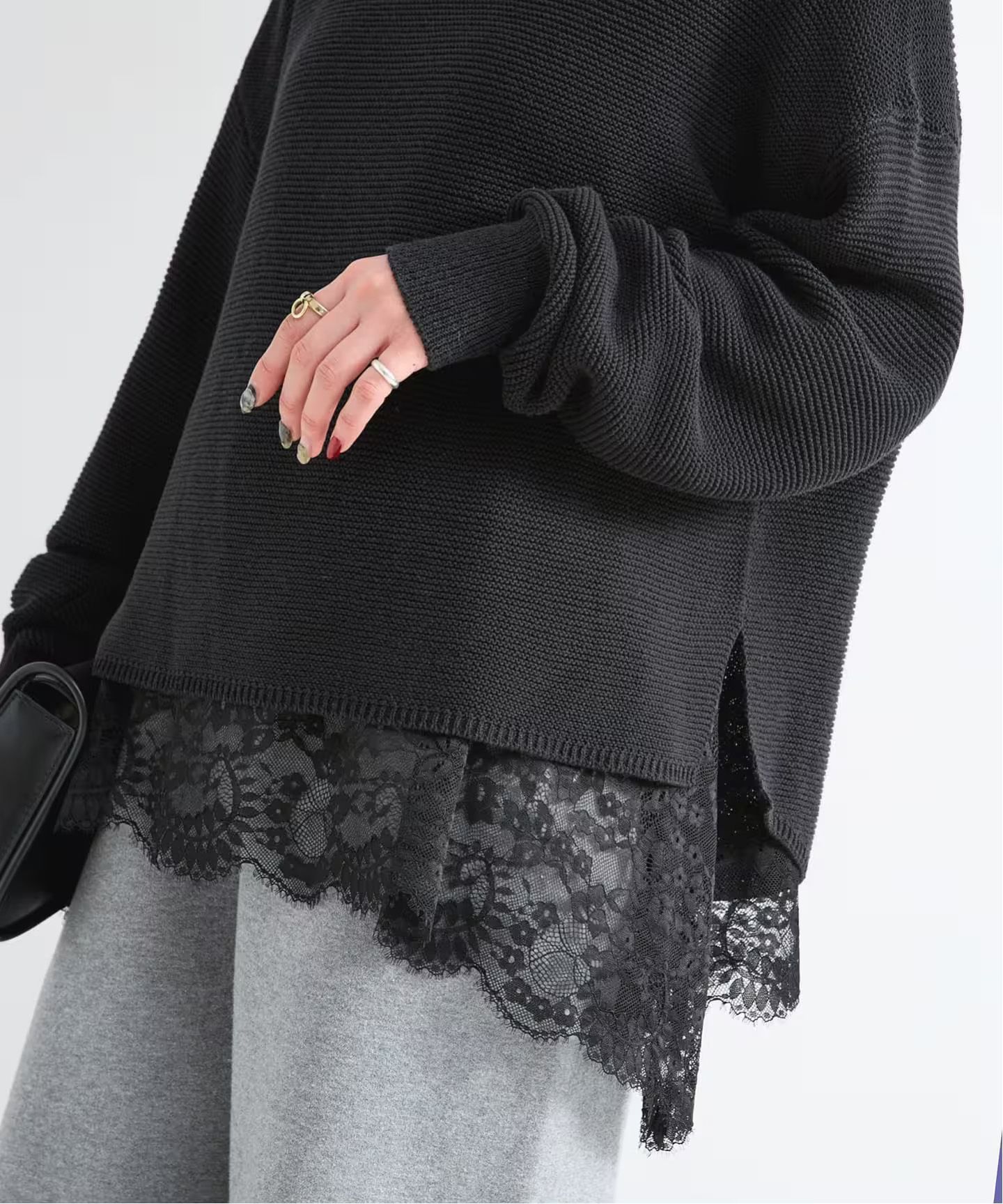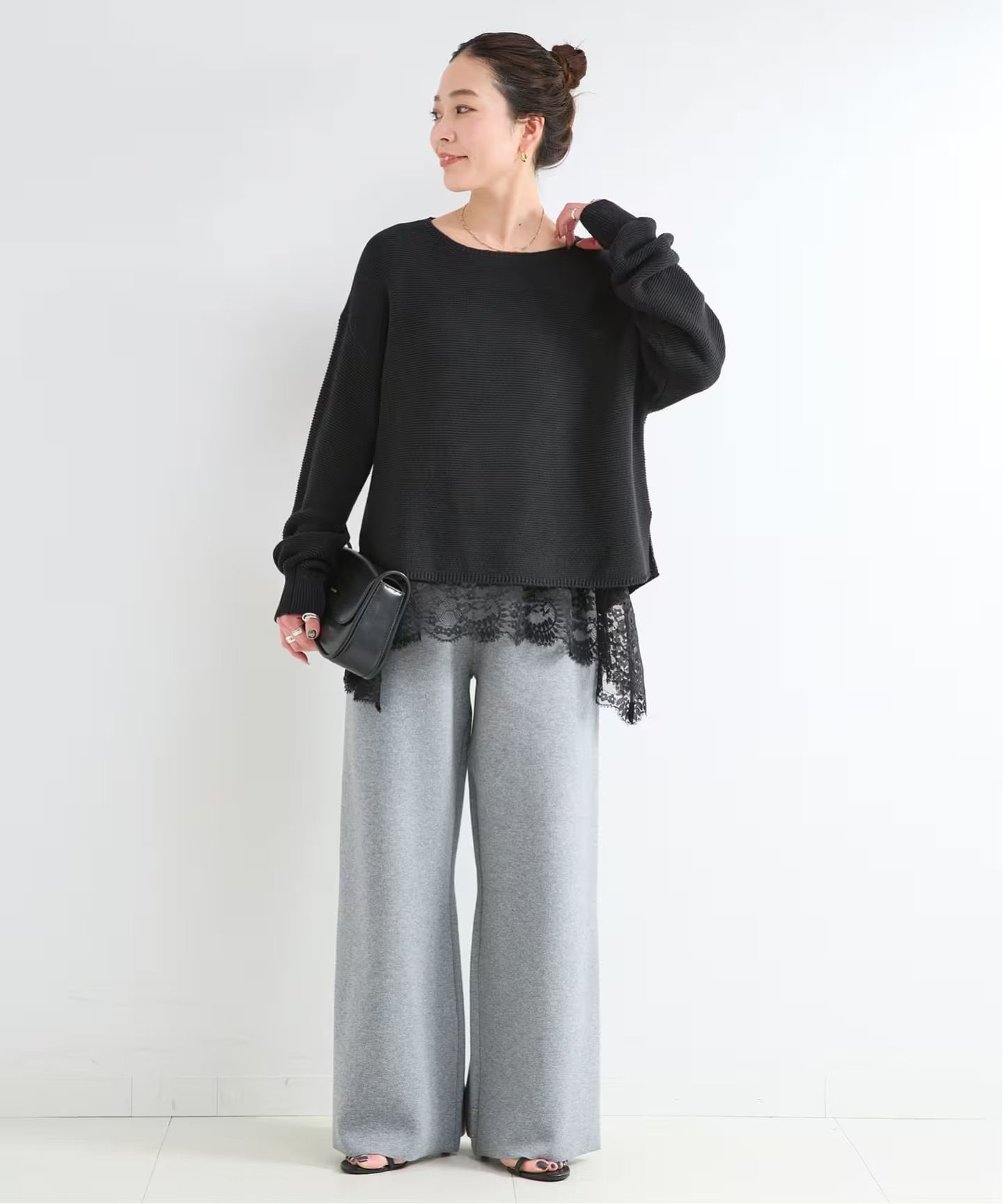 ロンTEEからタンクやキャミなど、インナーを替えていろいろなスタイリングを楽しめるニットです。