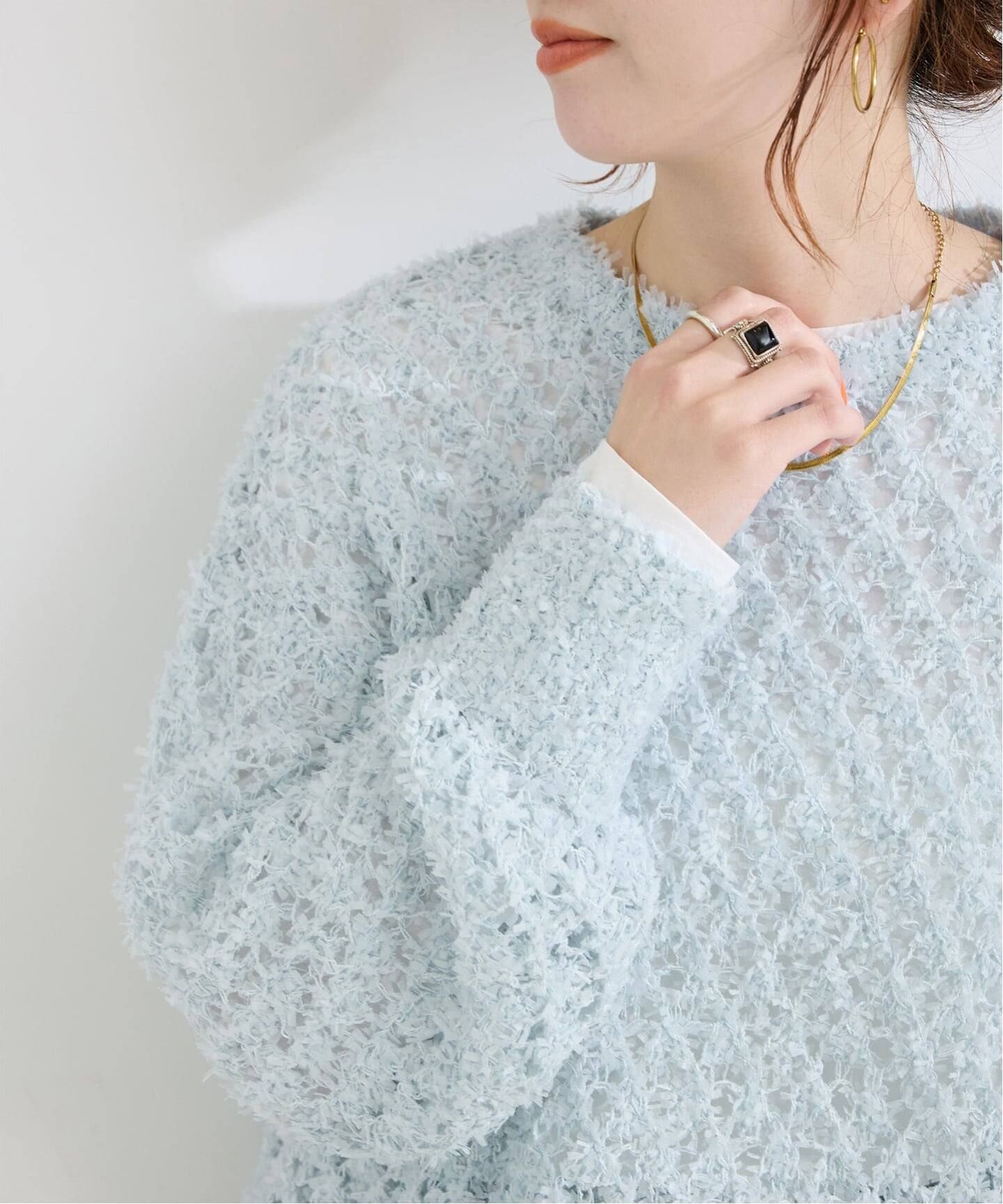 メランジ糸とテープヤーンを引き揃えたニットプルオーバー。