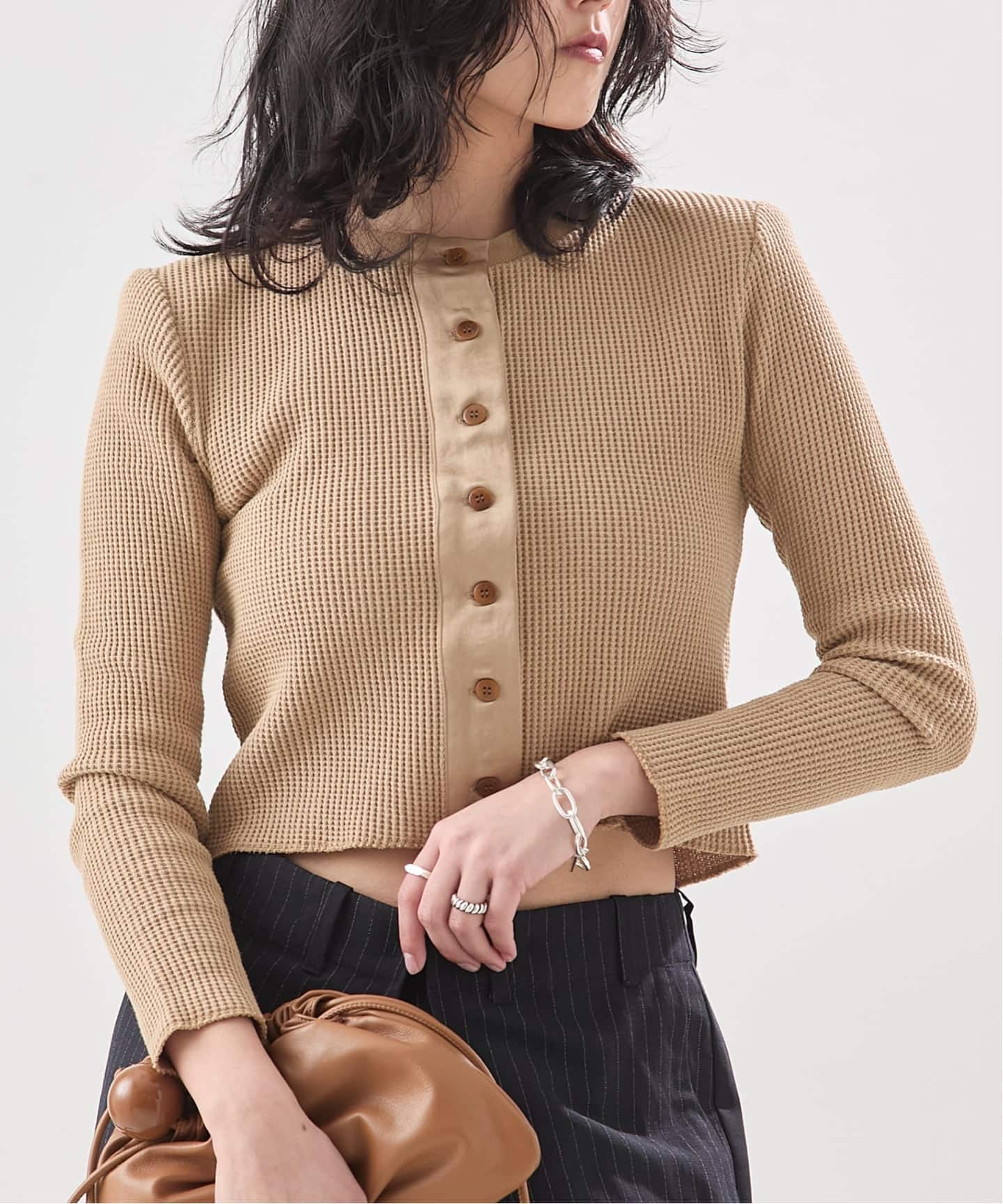 《予約》【Uhr/ウーア】Waffle Short Tops:カーディガン