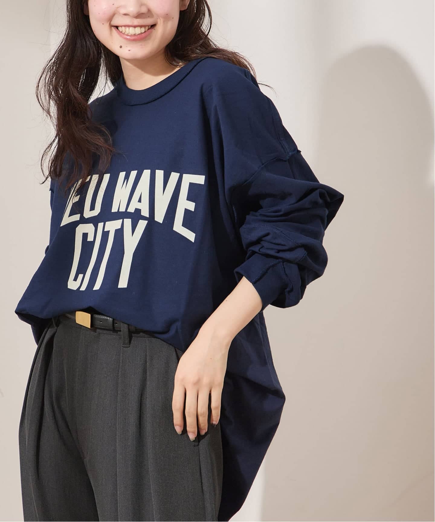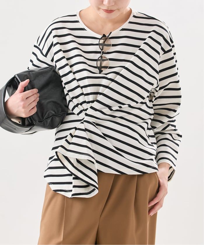 長いシーズン着回し!デザインカットソーの登場、寒い時期からアウターのインナーとしても存在感あるデザインカットソー。フロント部分のツイストデザインがインナーとしても、1枚着としても◎色違いで欲しくなるデザインカットソーはカラーで雰囲気も変わります。