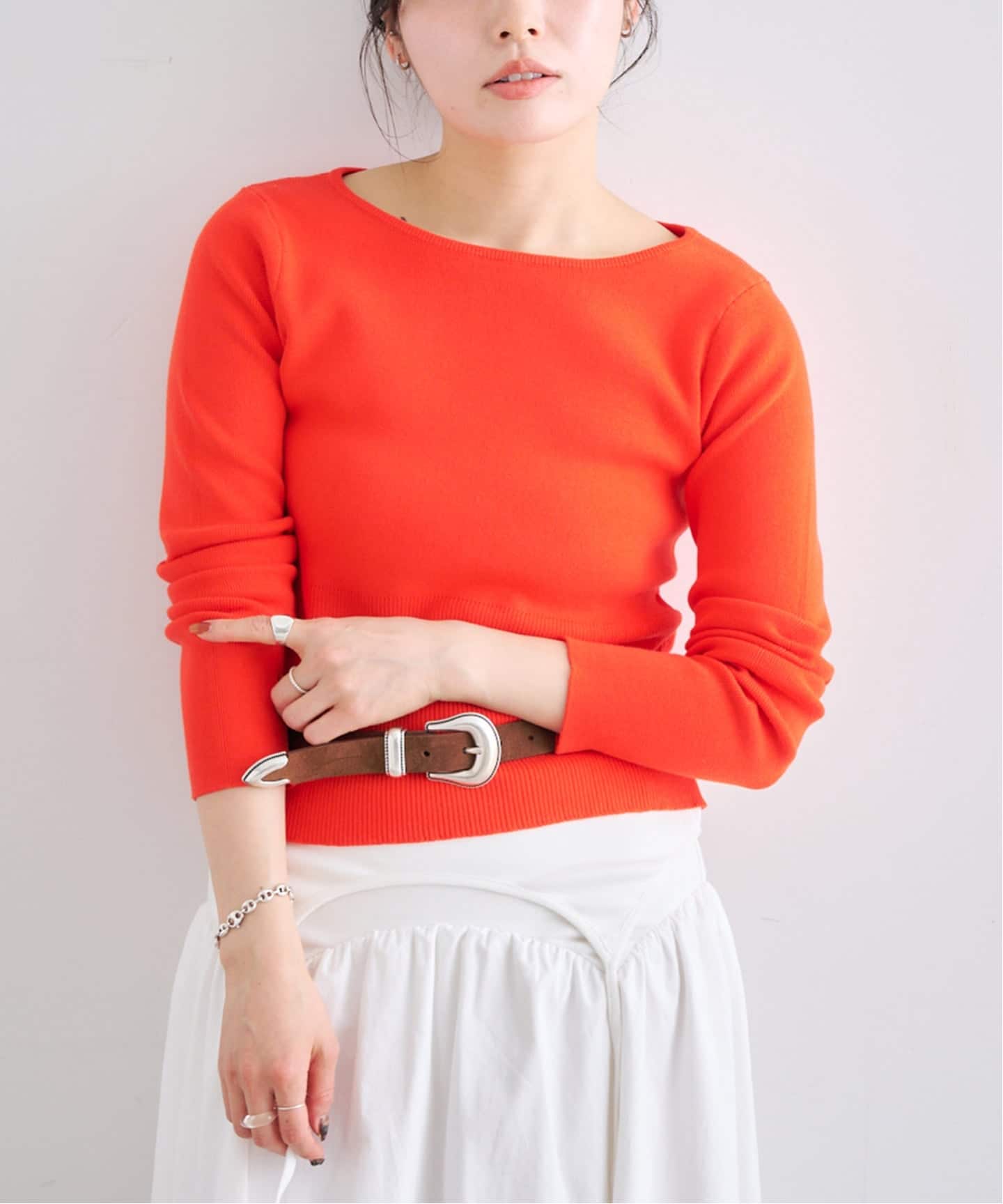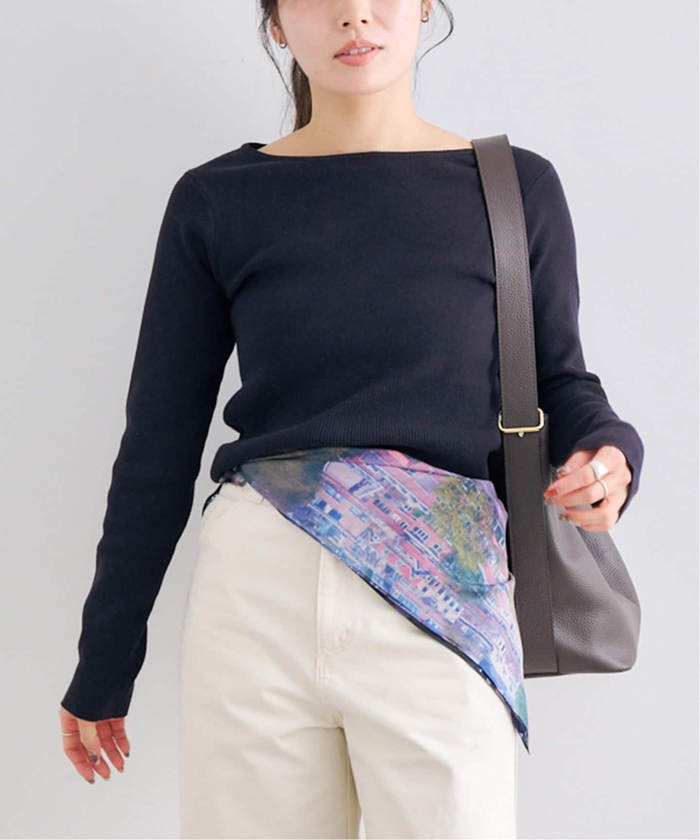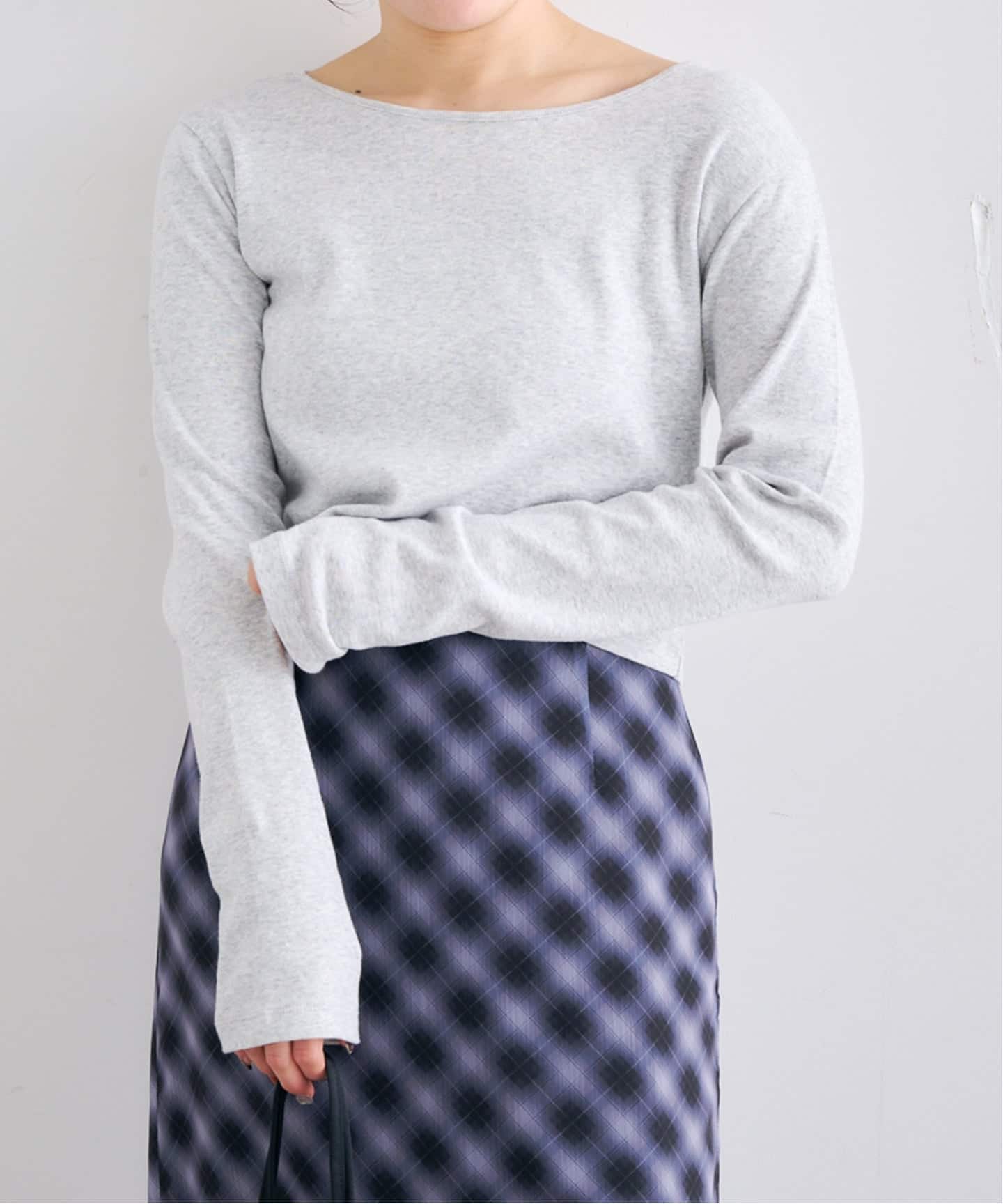 デコルテを美しく見せる浅めのネックラインと、身体に沿いすぎない程よいフィット感で、1枚でもレイヤードでも活躍。