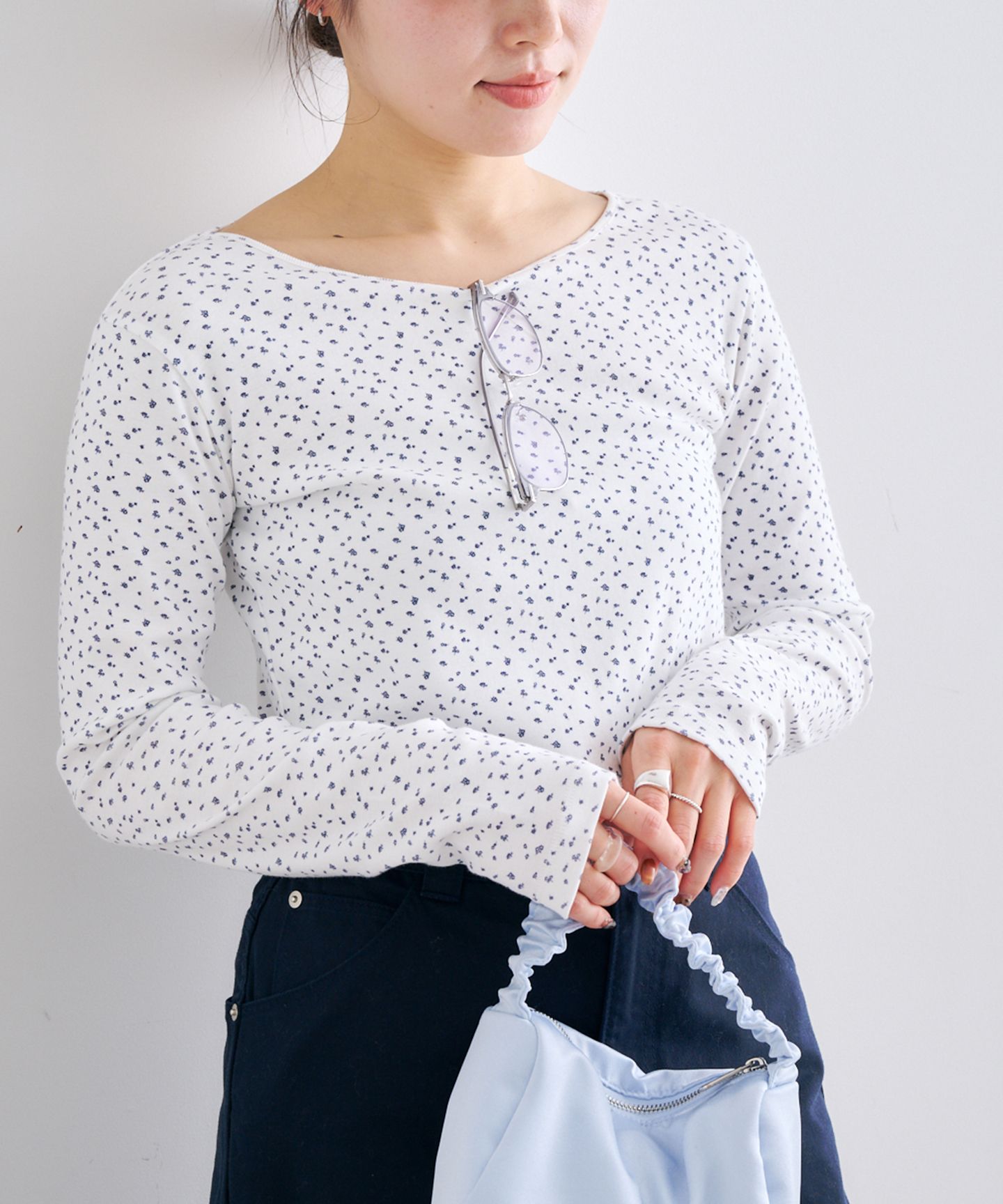 柔らかなフライスコットン素材を使用した、ロングスリーブショートトップス。