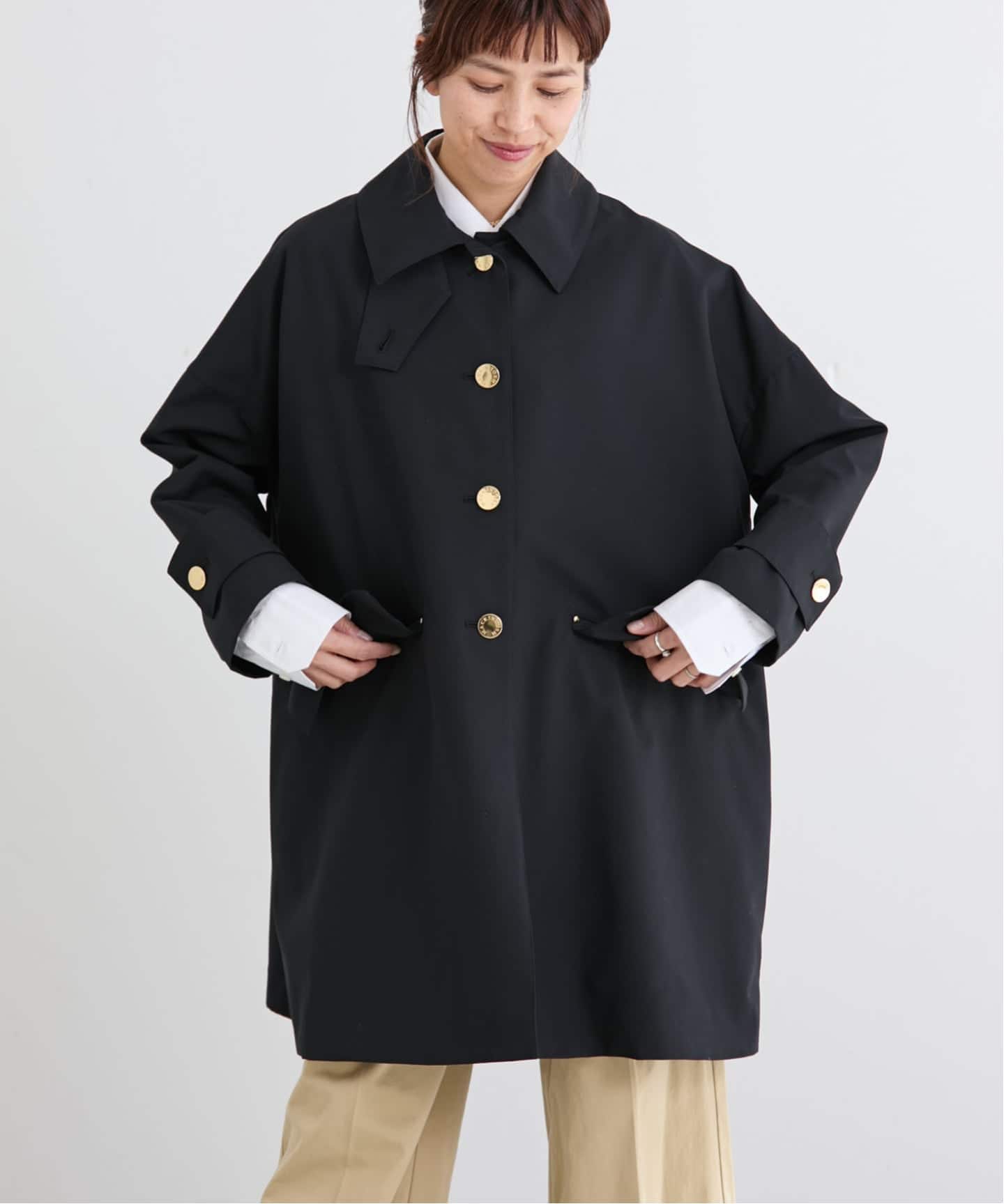 ドロップショルダーとAラインの美しいシルエットが、装いに女性らしい柔らかさを添えます。