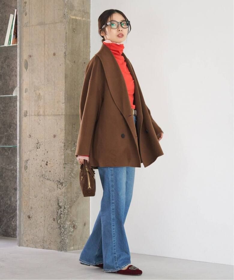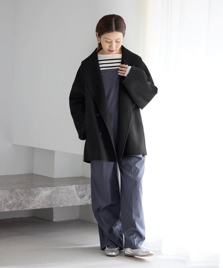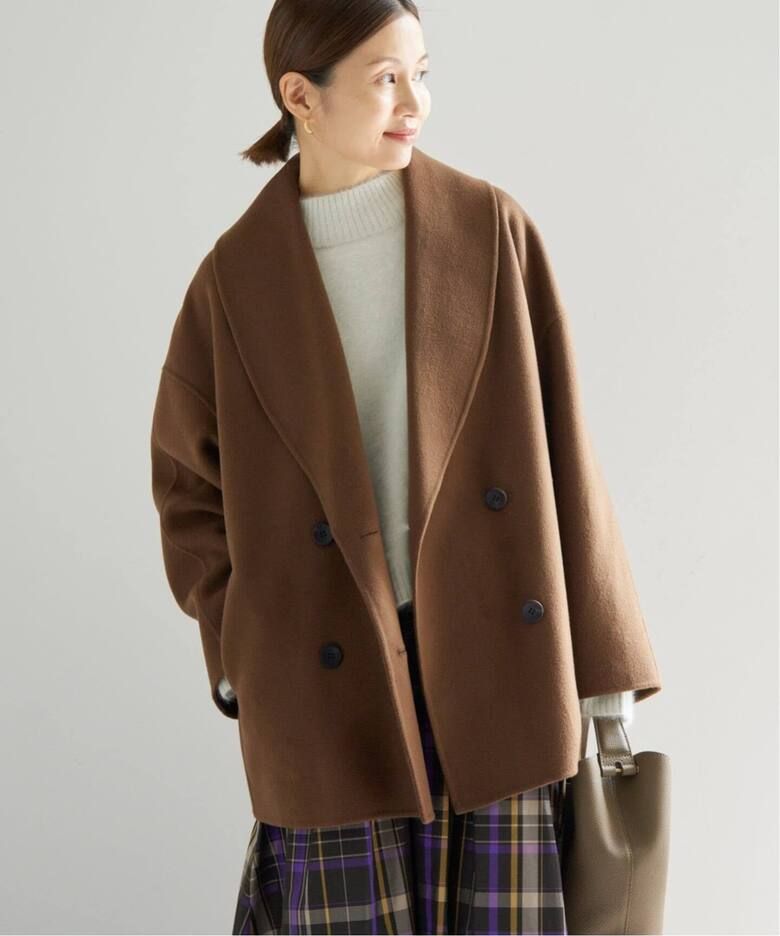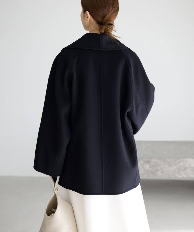 大きめのショールカラーと柔らかなコクーンシルエットが、羽織るだけで洗練された印象を演出します。