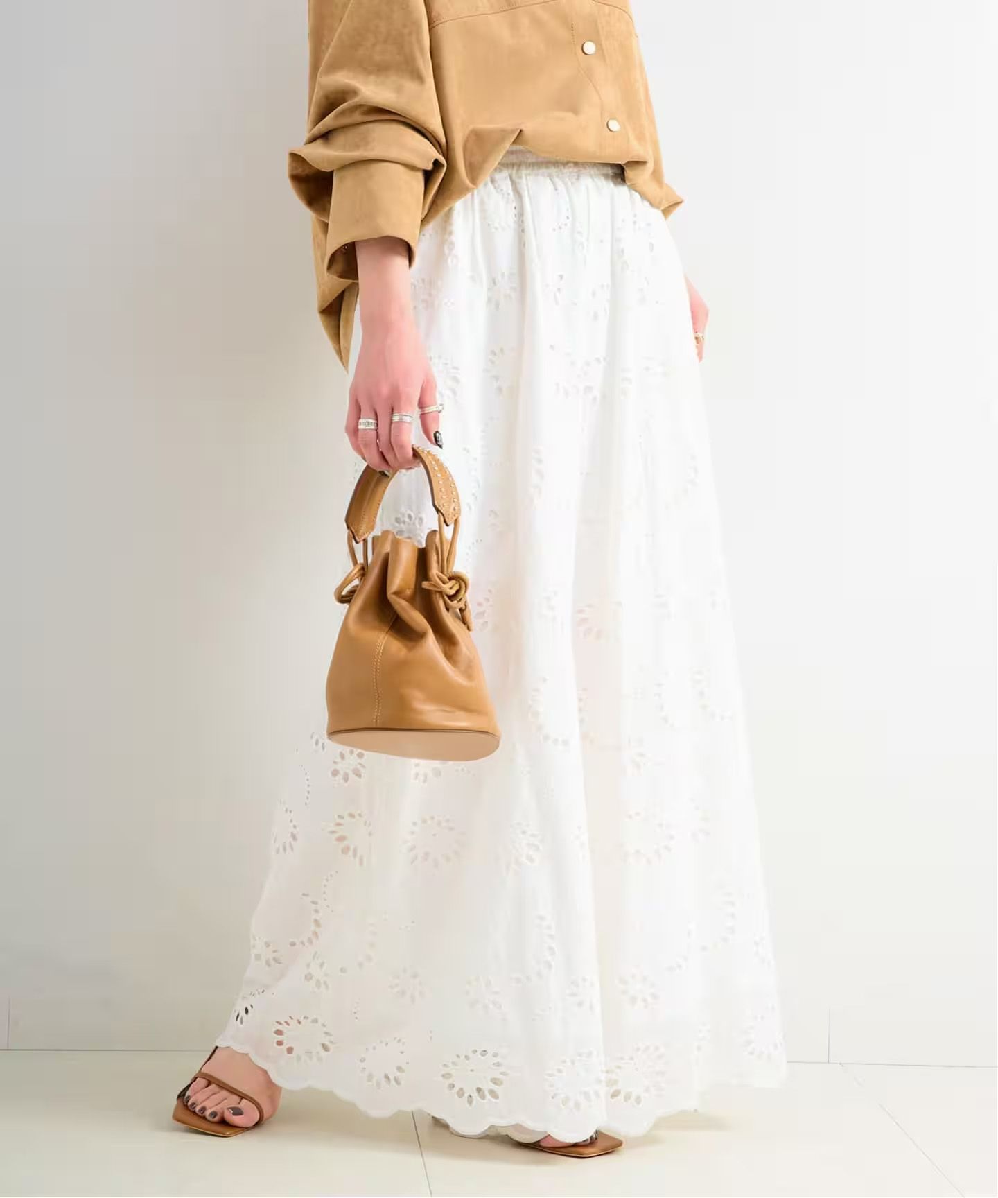 総レース使いでフェミニンな装いに。スカートのようなボリュームのある見え感がポイント。