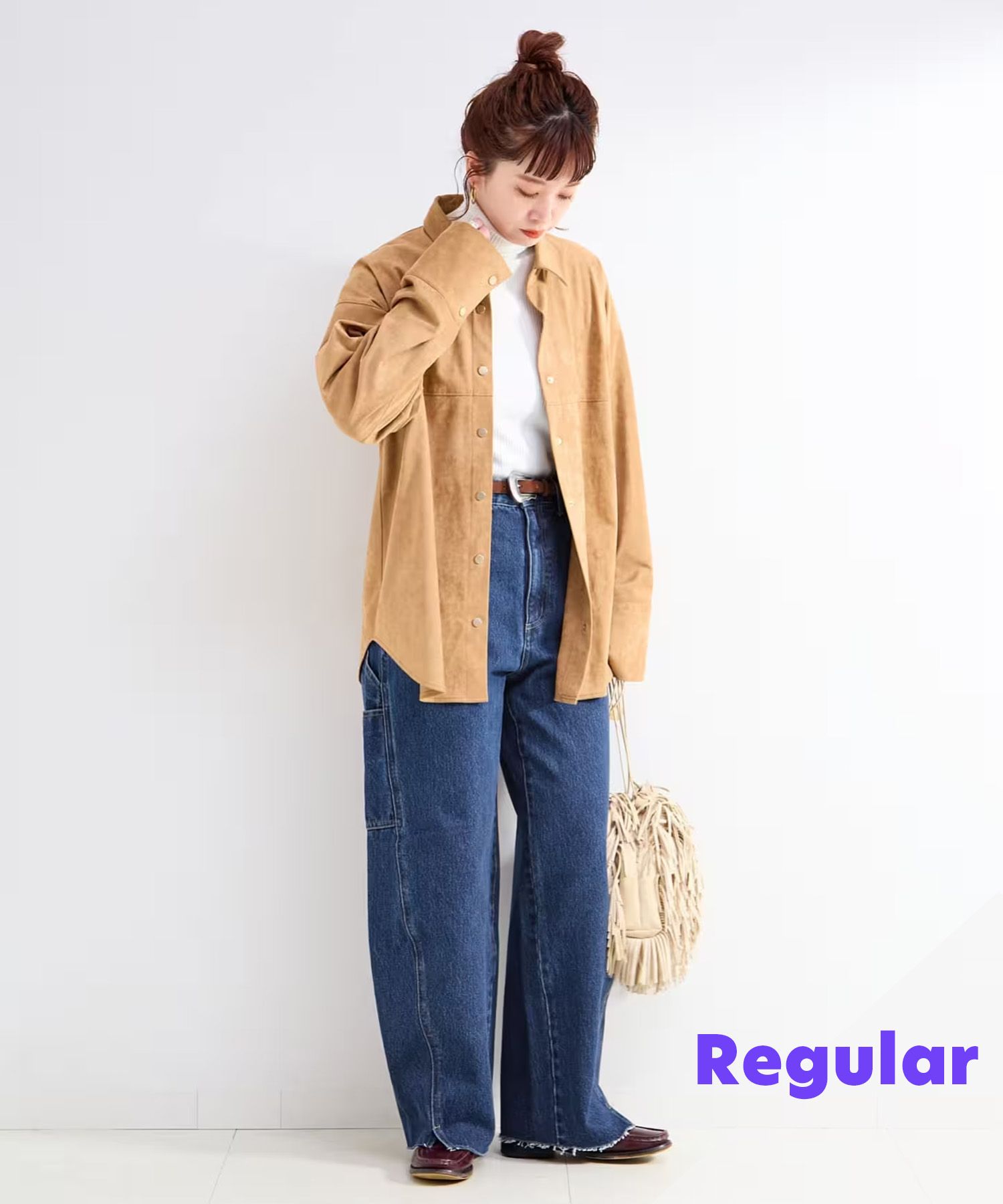 断ち切りのビンテージ感とチビスリットが入った裾がデザイン性があり、足元がポイントになります。