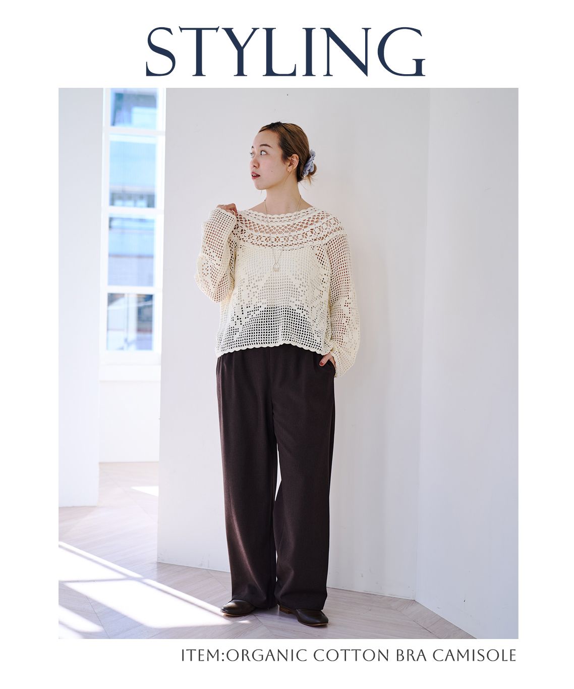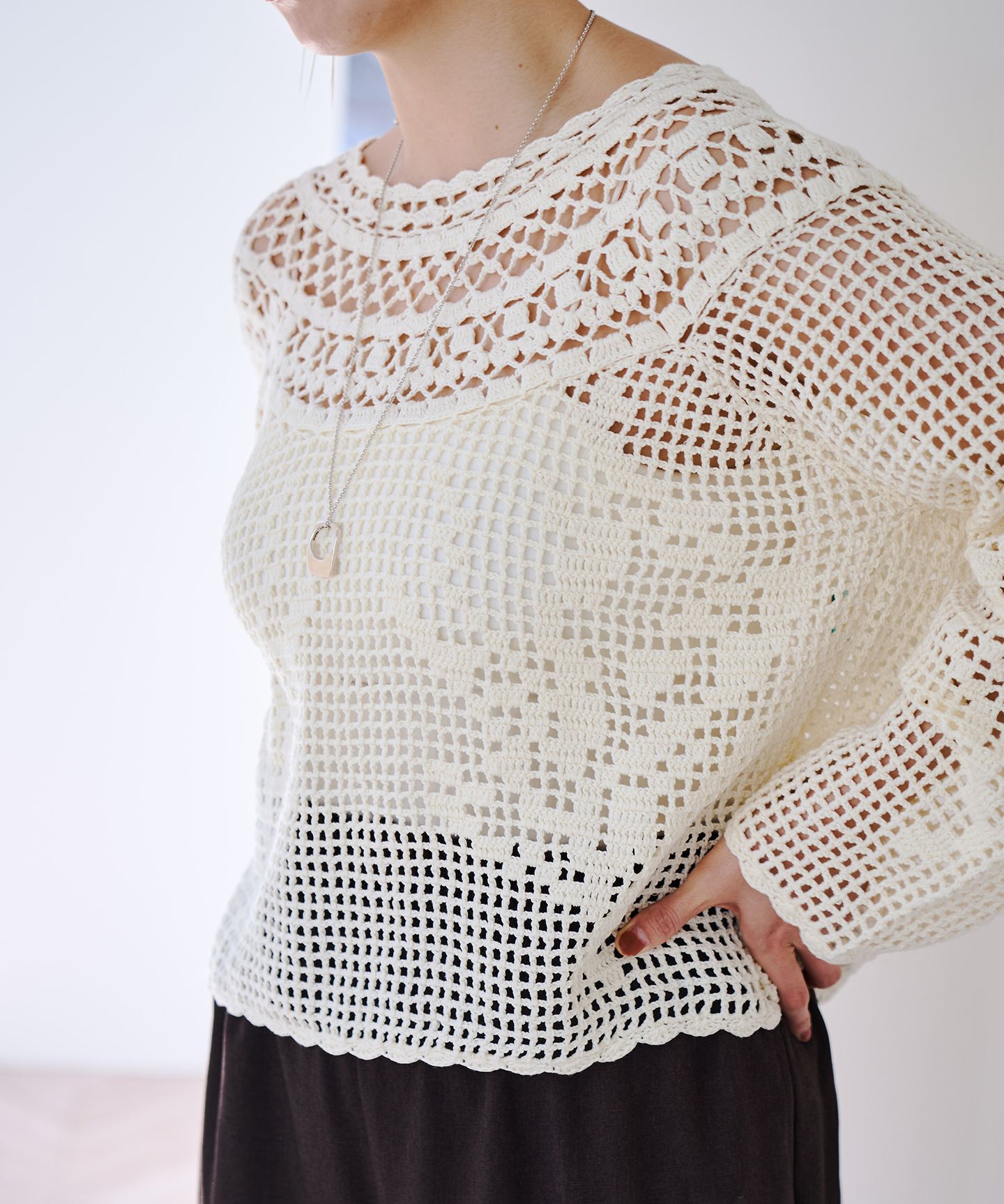 暖かくなる季節に出番が増える、シアートップスやかぎ針編みのアイテムとも相性抜群。