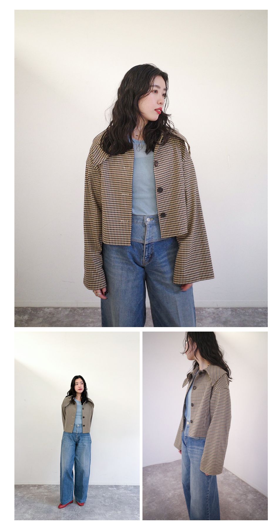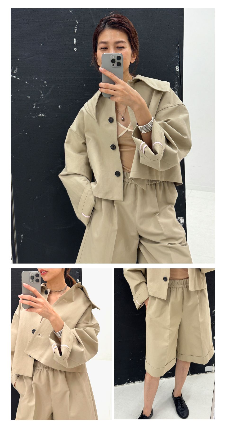 当初のイメージもあり、ビジュアルではセットアップでの提案が主ですが、もちろん他のアイテムとのスタイリングも魅力です。