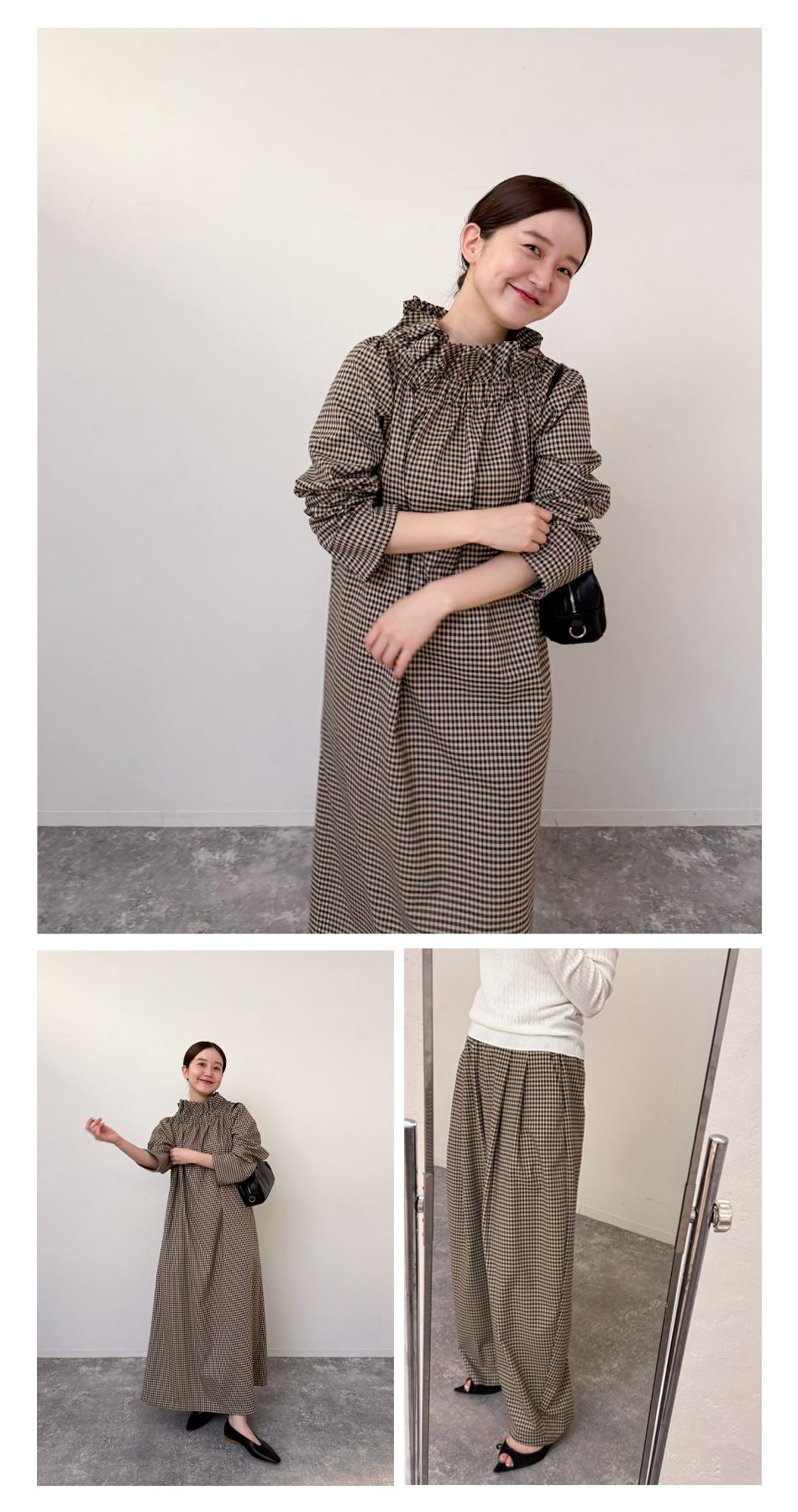 そんな風にサンプルアップと修正を数回進める中、当初作っていたブラウスが最後の確認時になんとワンピースへとデザイン変更!ショーツだけの予定だったパンツはタックワイドパンツと2型に!! パンツ2型のデザインが決まった際、「ショーツはベージュ、タックパンツはチェックに」瞬時に判断するマナさんが印象的でした。