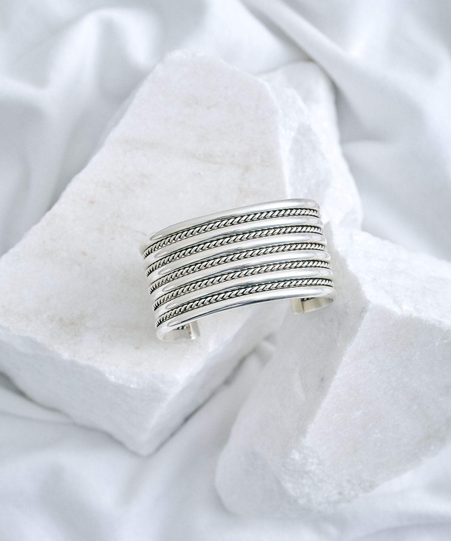 ・元々は細身のバングルでしたが、今回幅広デザインに別注することで、シンプルなスタイリングにも映える存在感をプラス。手元を華やかに演出する特別なアイテムに仕上げました。