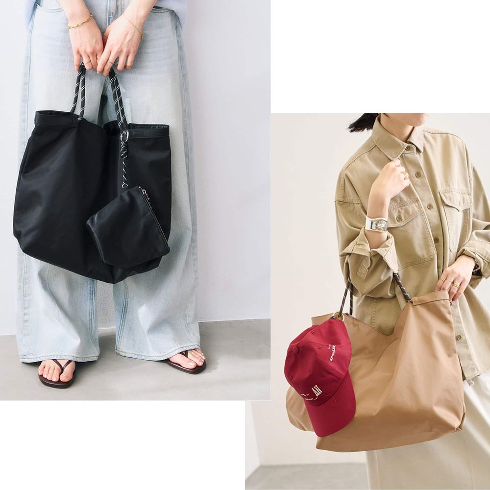 シンプルで洗練されたデザインのポーチ付きトートバッグ。軽量で柔らかな素材感でありながら、しっかりとした容量がありデイリー使いに◎