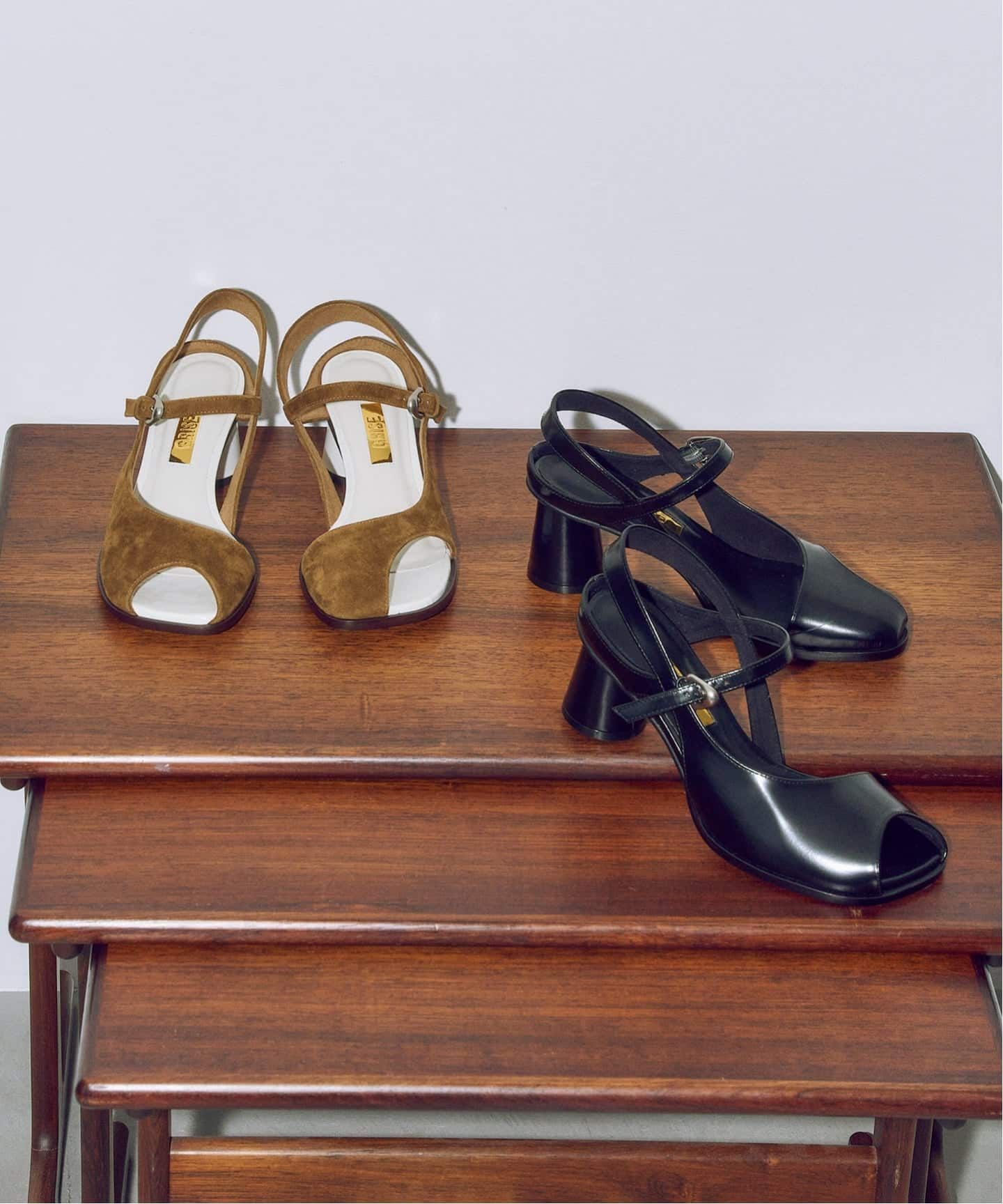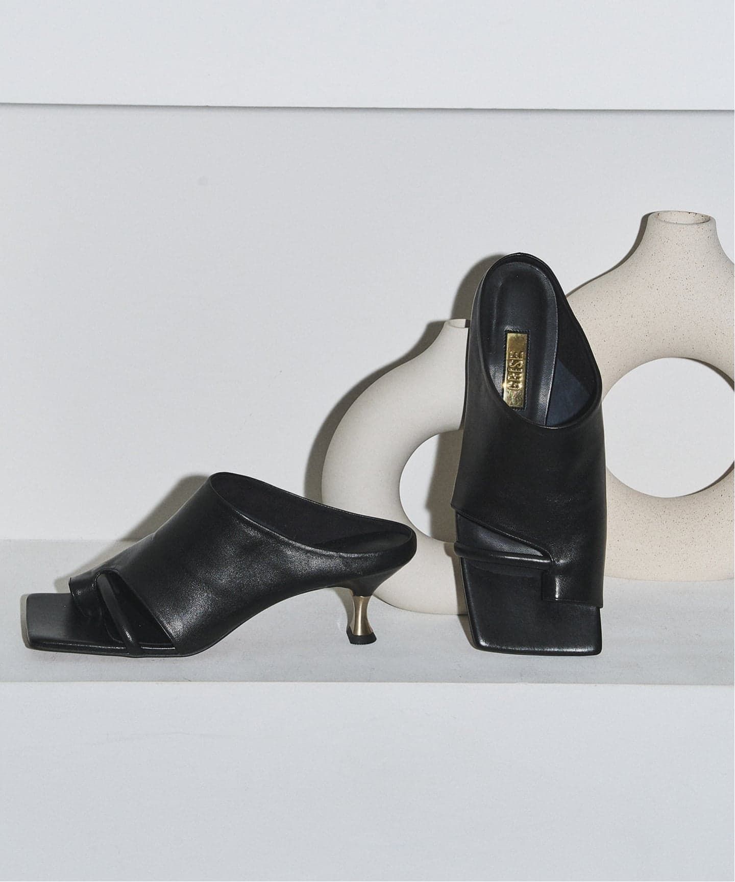 |GRISE6cmレザーアシメオープントゥサンダル