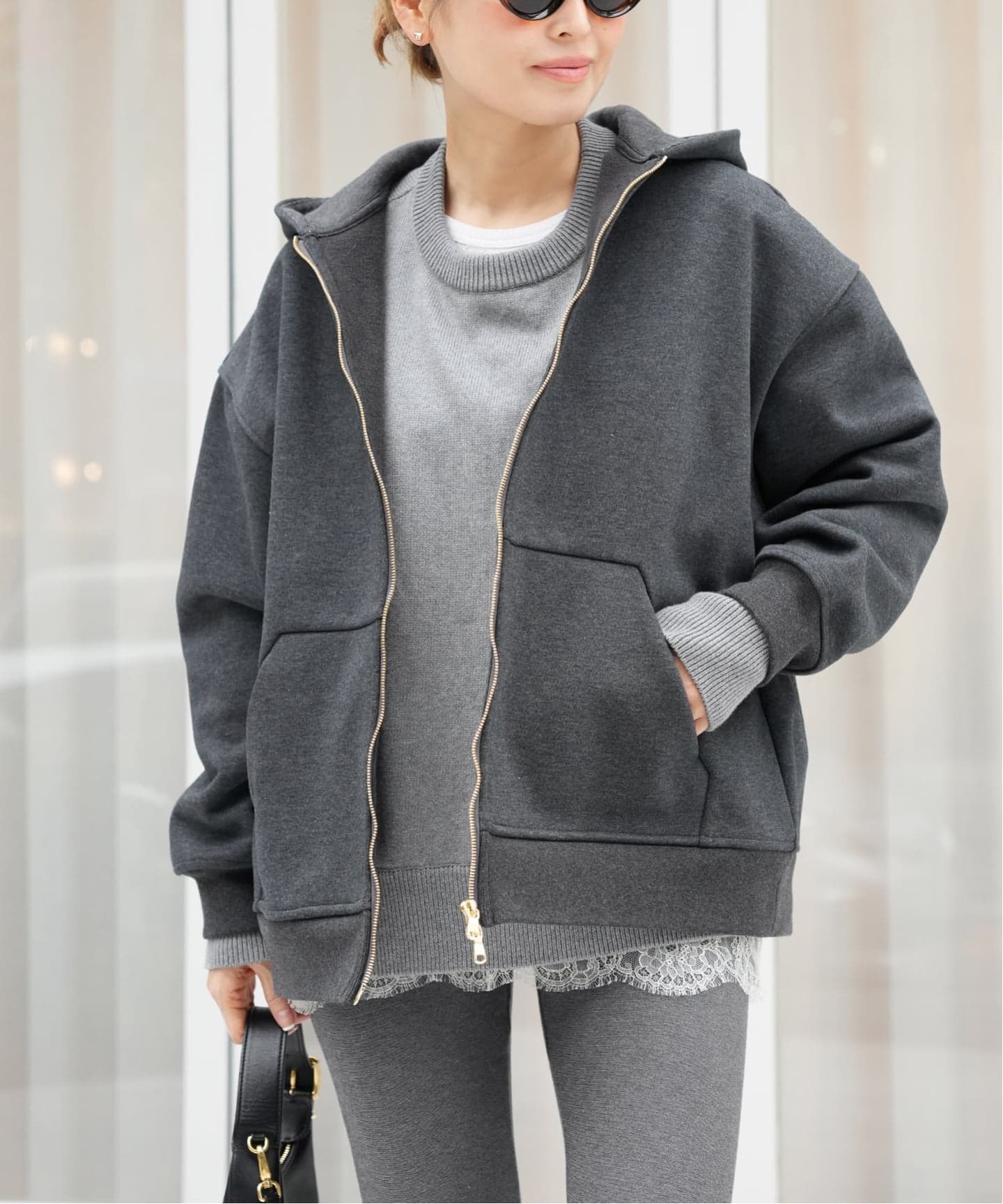 フェミニンさとタフさが共存するスウェット。