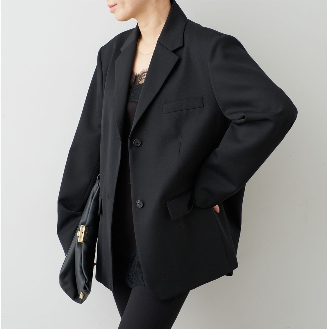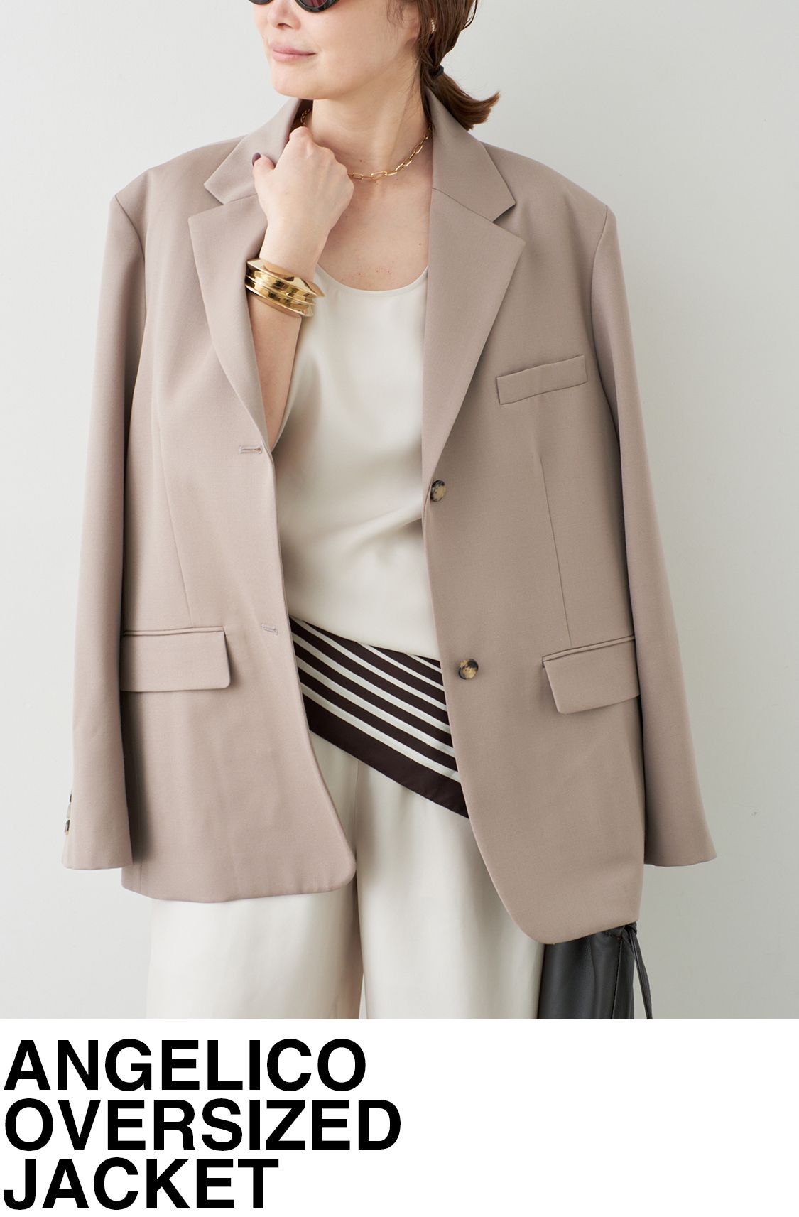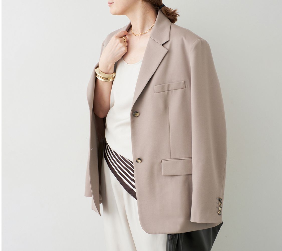 オーバーサイズで絵になるシルエットだからこそオーソドックスなジャケット地を使い、上質でありながら今の気分を取り入れられる。羽織るだけで"今"のムードが完成。