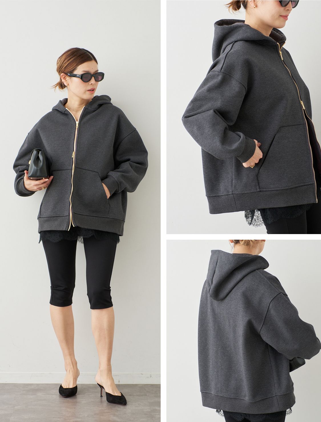 Wジップがカジュアルアイテムに華を足し大人っぽいアクセントに。