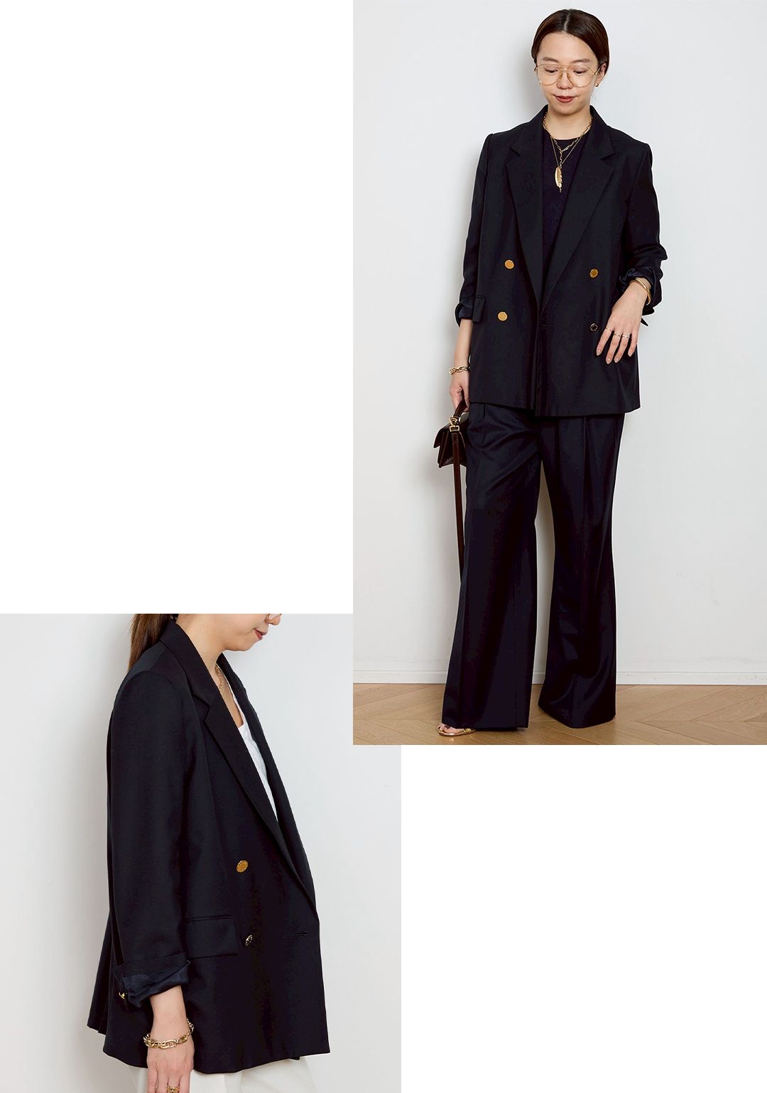 横から見たシルエットも素敵で、ワイドなボトムと合わせても重さを感じません。