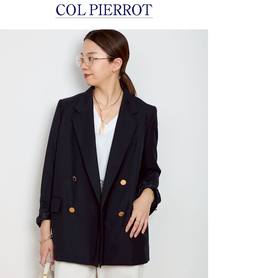 Col Pierrotならではの上質な素材感と、美しいシルエットが際立つ一着。