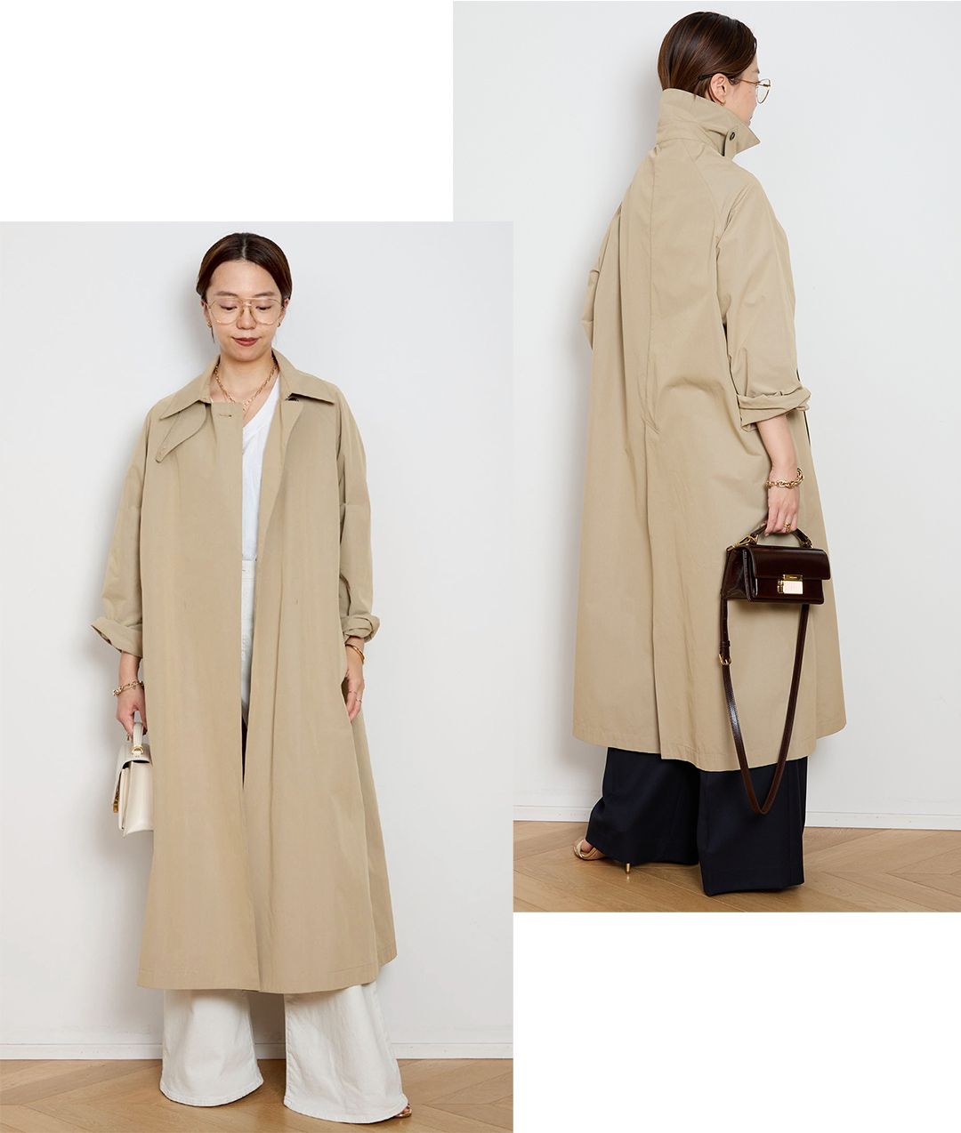 その一方で、トレンチの魅力をいちばん端正に映すのは、やはりロング丈。