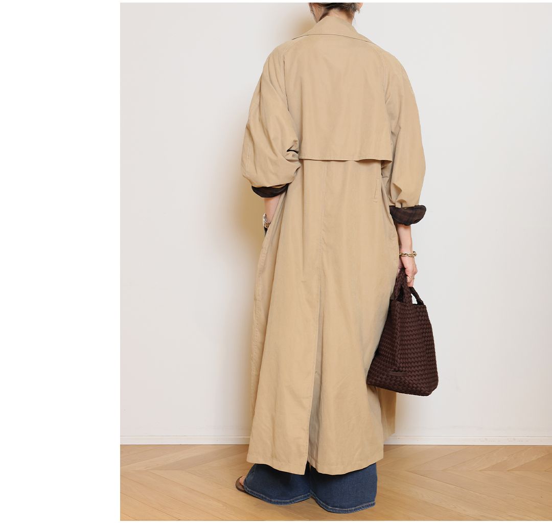 トレンチ特有の堅さはなく、エフォートレスでいながら、どこか品のある佇まい。