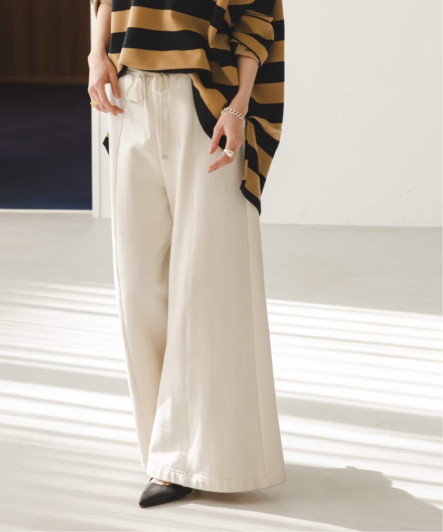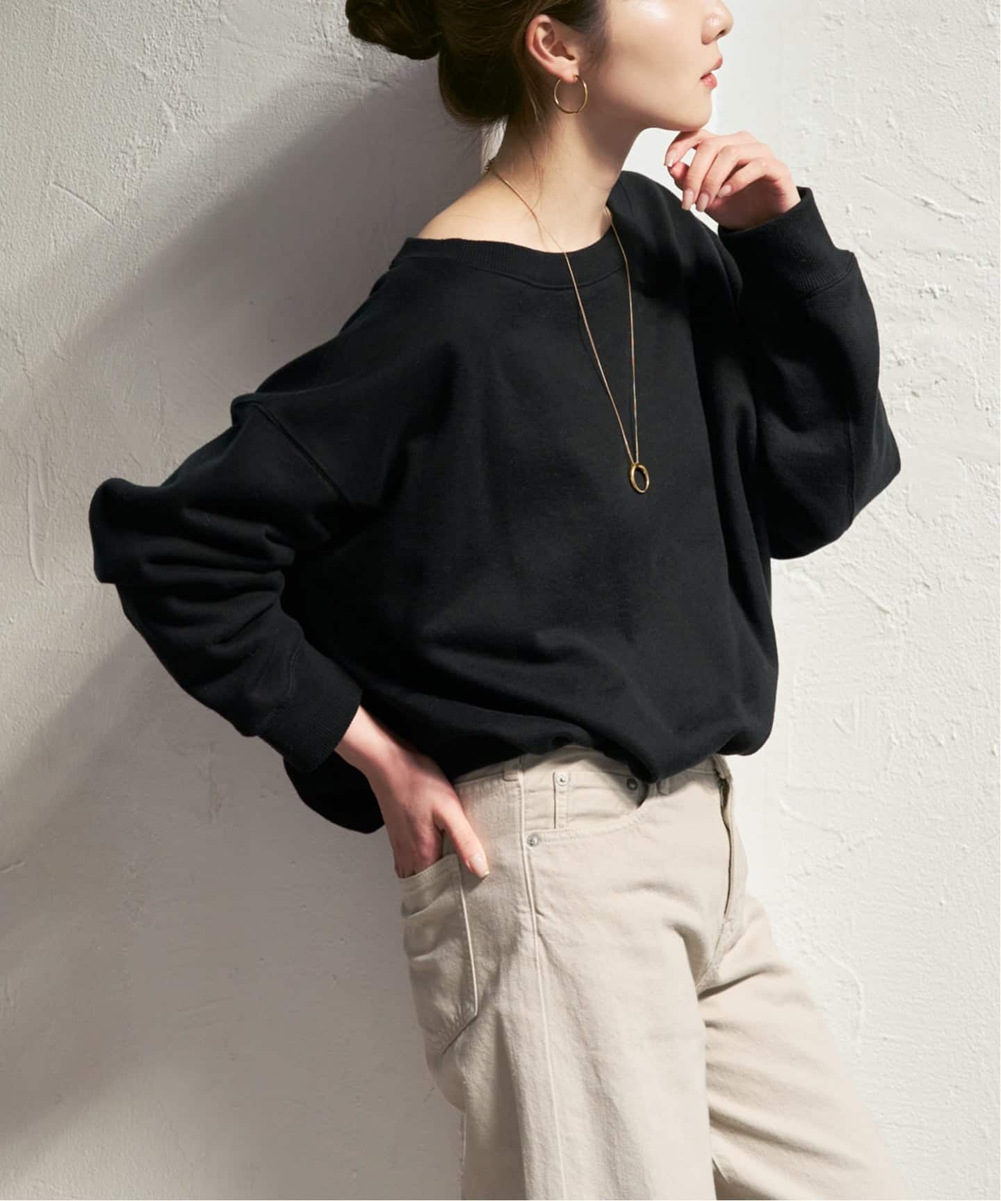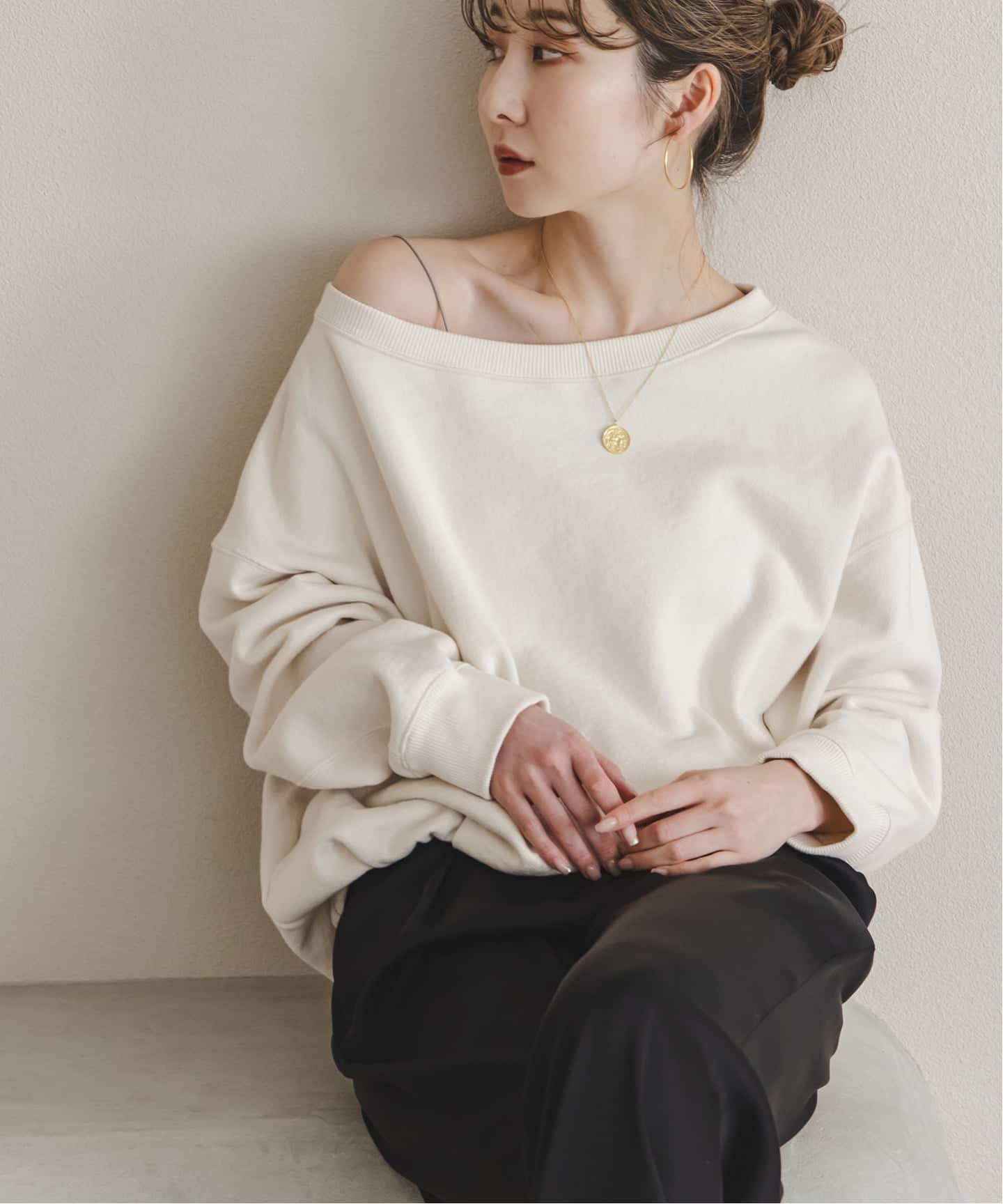 そのままではもちろん、肩を落としてオフショルダーとしてアレンジするのも一押し。