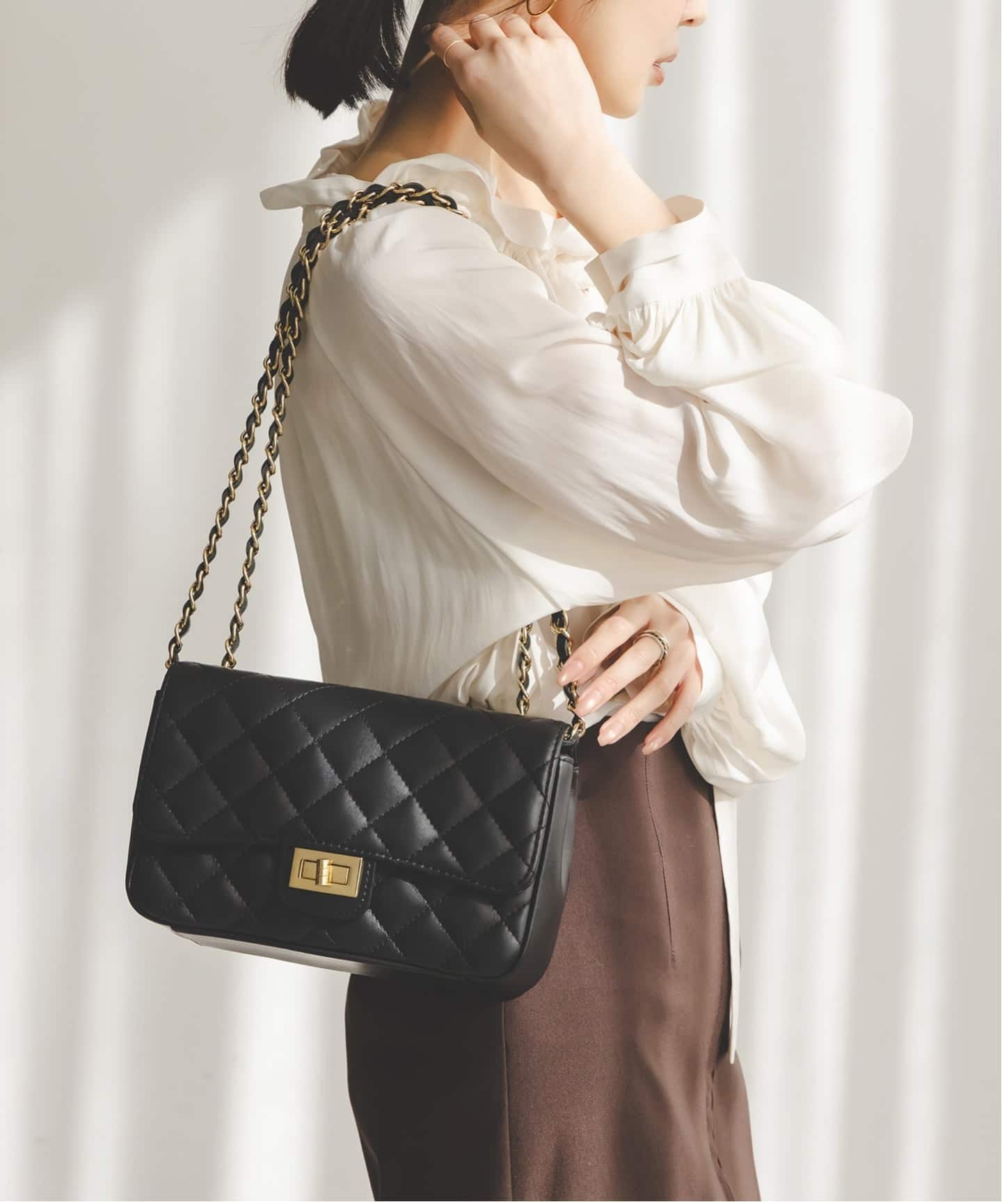 キルティングボディとチェーンストラップがマッチした、廃れることないレディなデザインが魅力の一品。