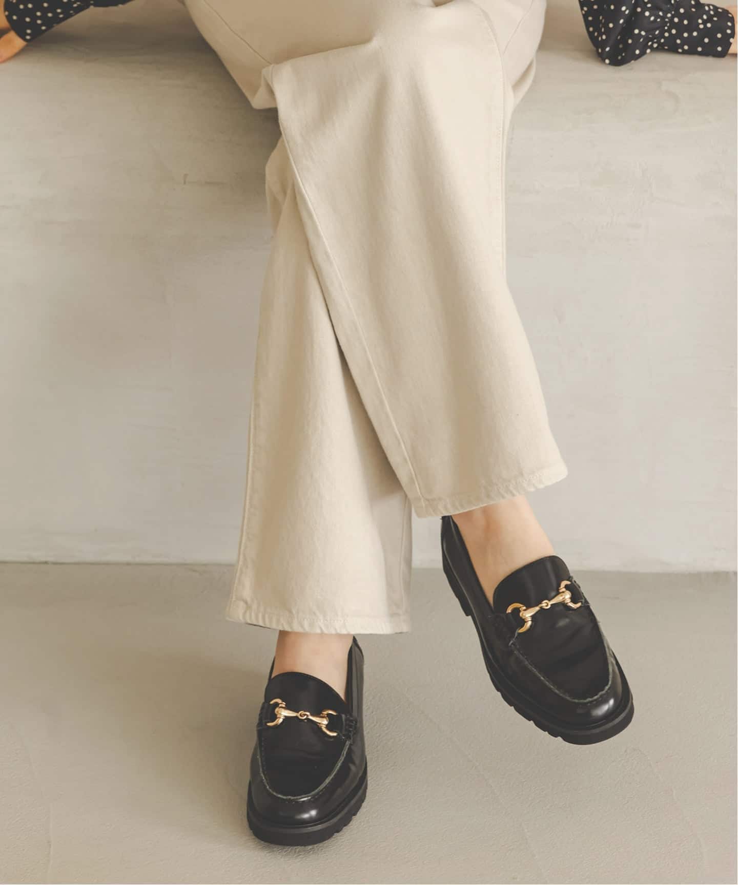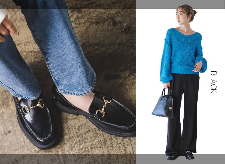 甲部分に飾られたゴールドのビットモチーフが特徴のローファー。