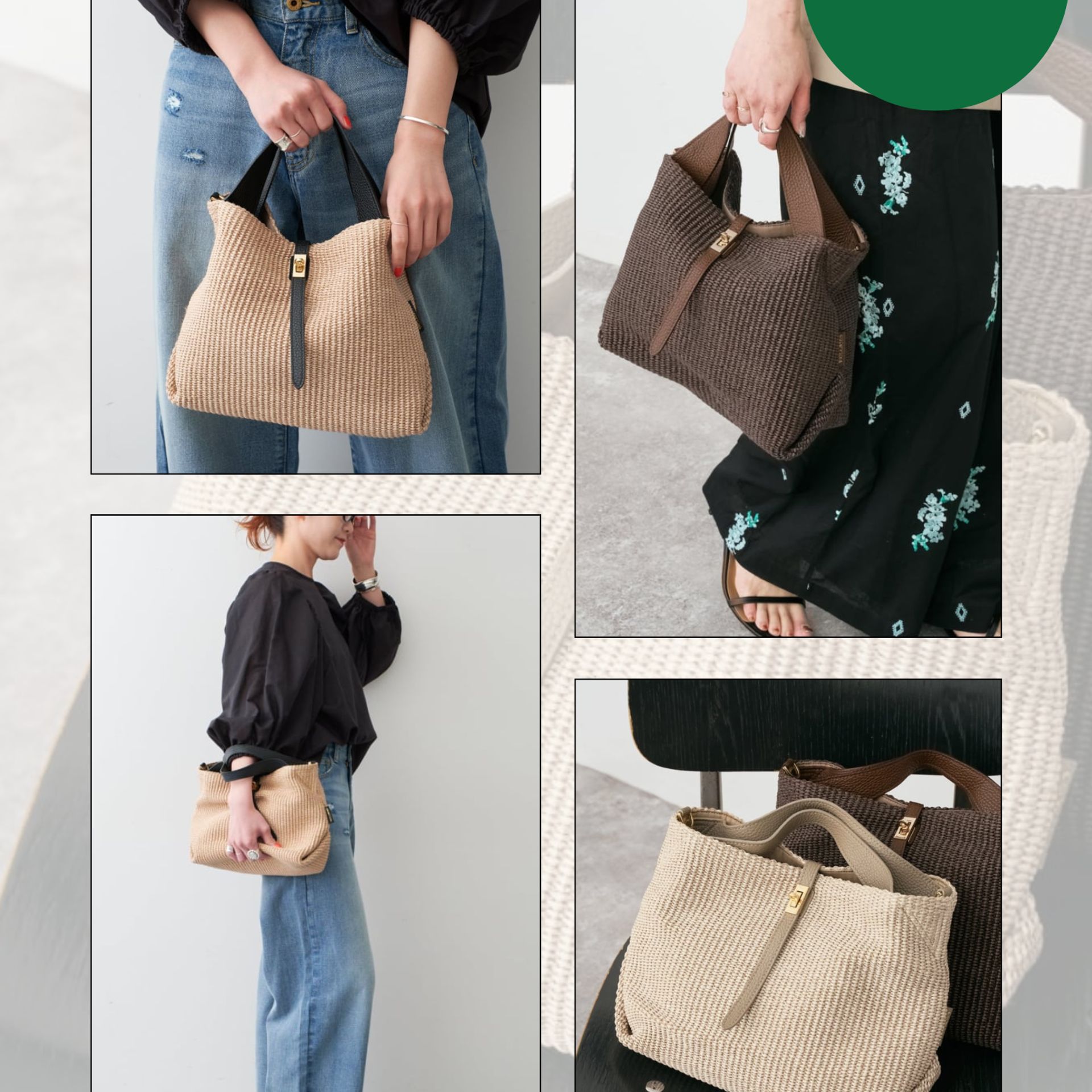 季節を感じるラフィア素材で、装いを軽やかにアップデート。