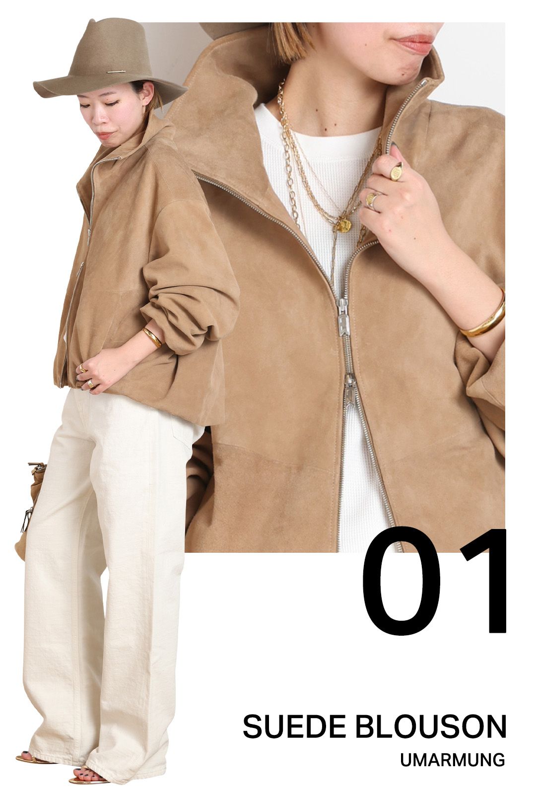 ドイツ語で「ハグ」を意味するブランド名の通り、包み込まれるような立体的なシルエットで、タフな印象の多いスウェードもどこか女性らしい。
