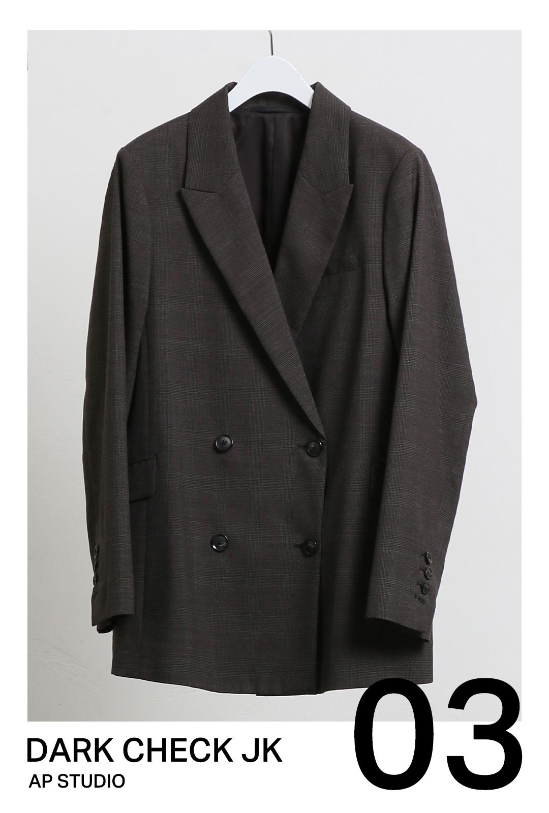 繊細なチェック柄で仕立てたダブルジャケット。