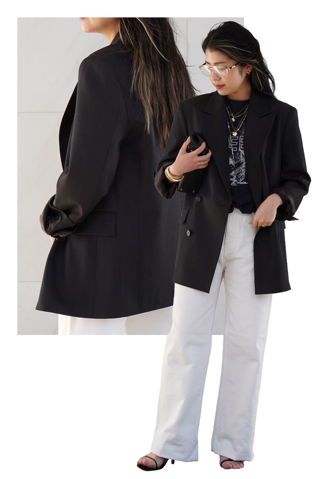 黄みを抑えたエクリュカラーは、春らしさもあり軽快な印象に。